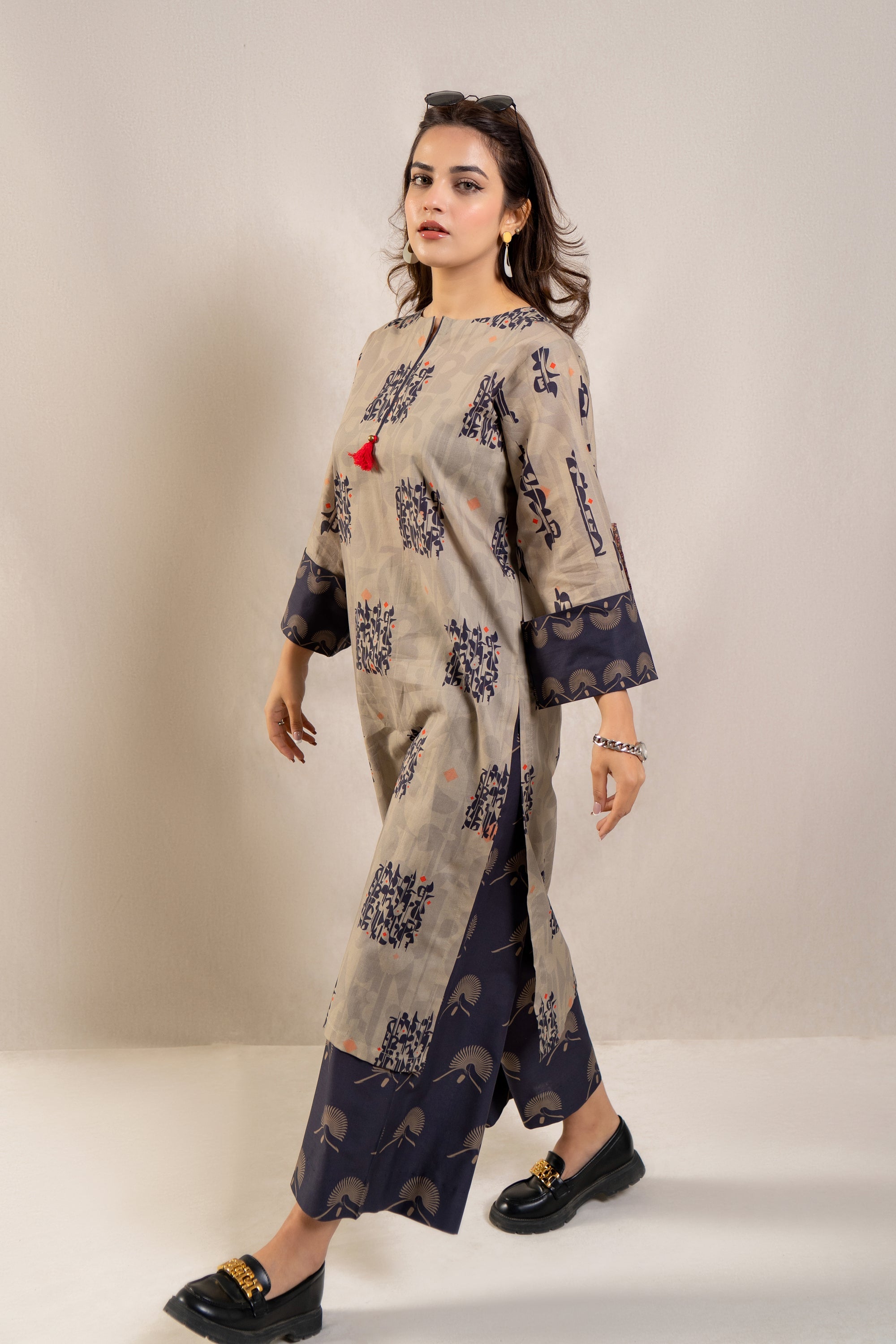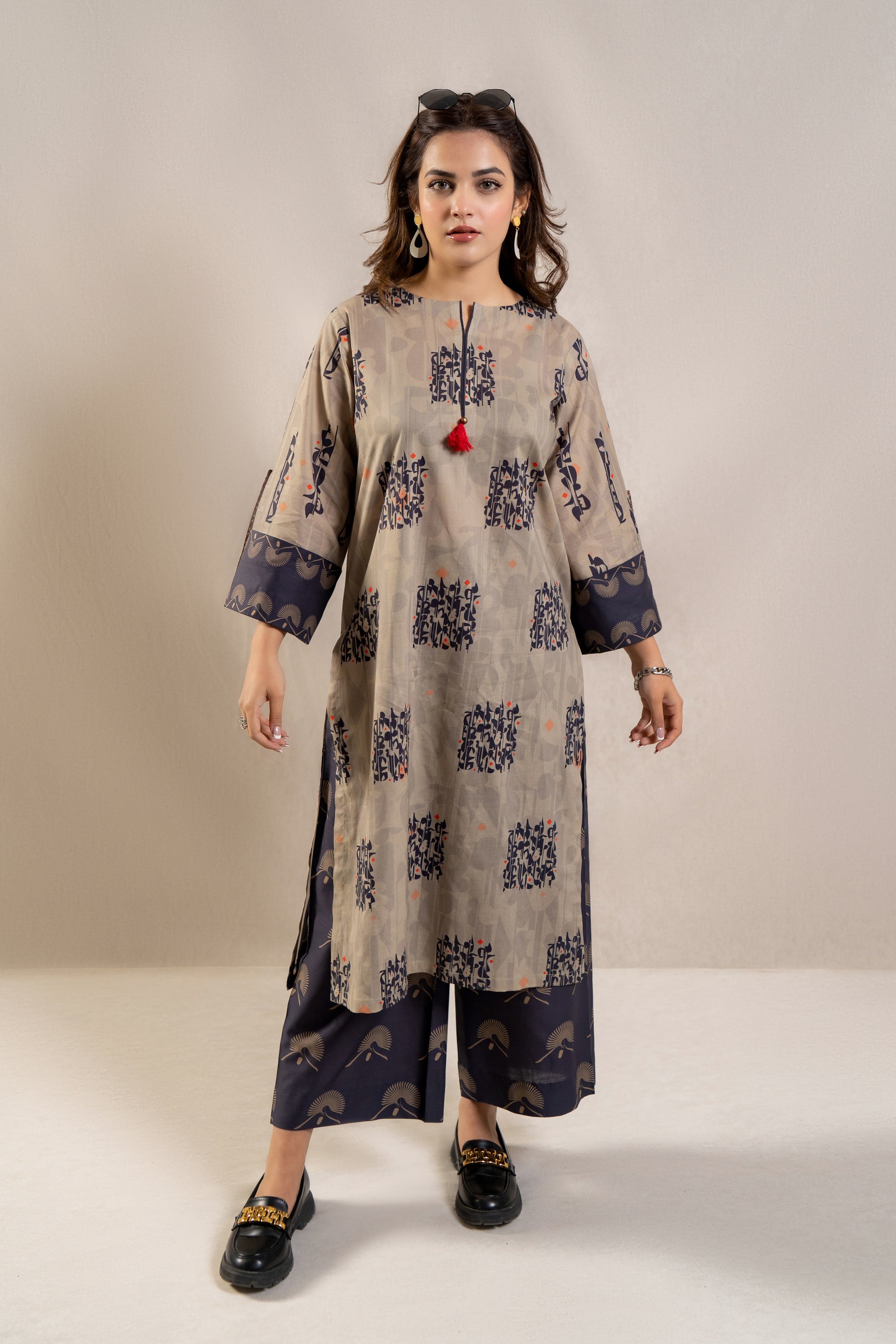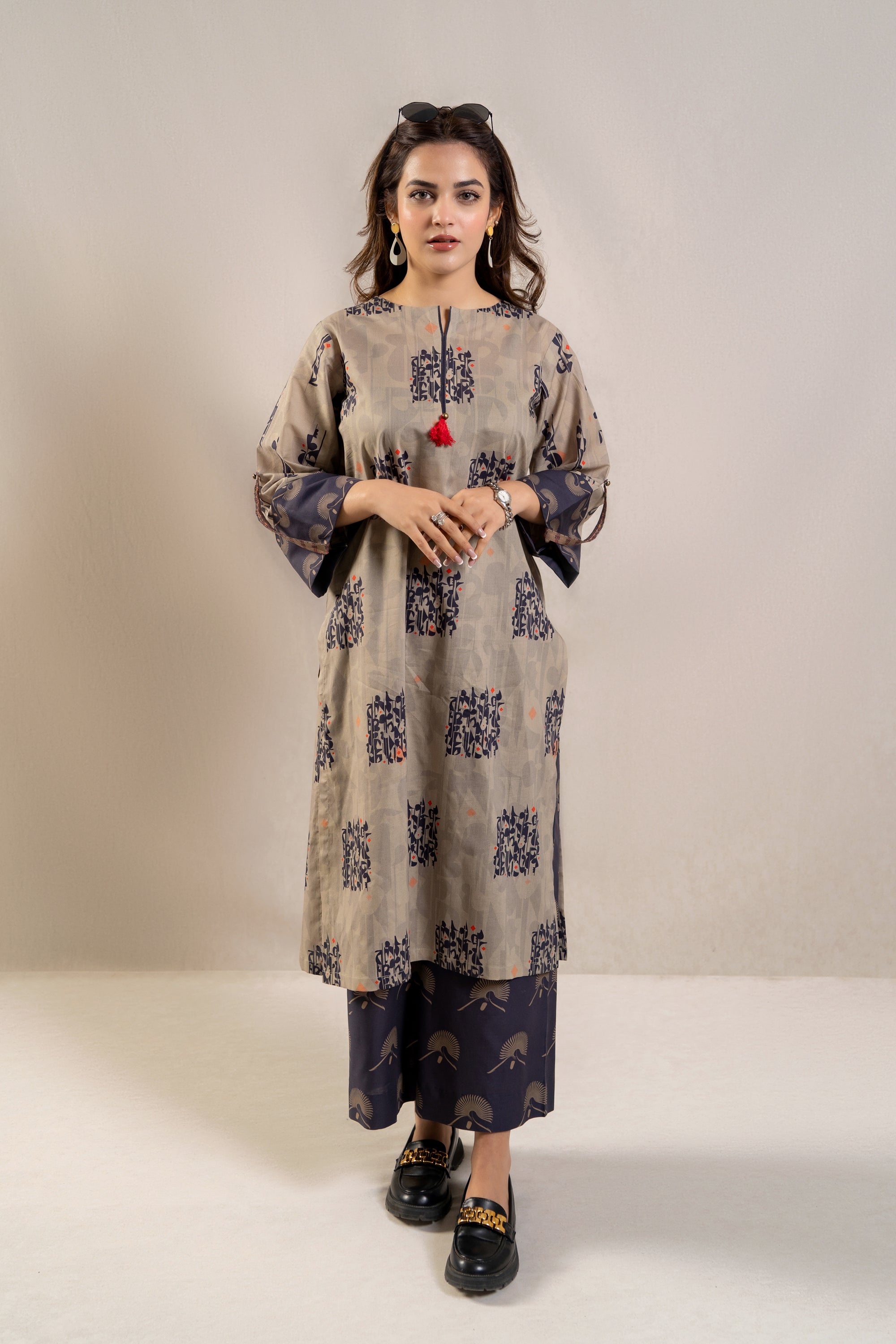 Introducing the ultimate summer ensemble: the ready-to-wear 2-piece printed lawn suit! This standout outfit features a stunning long printed shirt adorned with folded sleeves, exuding effortless elegance and charm. Paired with contrasting loose trousers, this ensemble offers both style and comfort, perfect for any occasion under the sun. Whether you're lounging by the poolside or attending a stylish soirée, this ensemble promises to make a statement and elevate your summer wardrobe to new heights.
