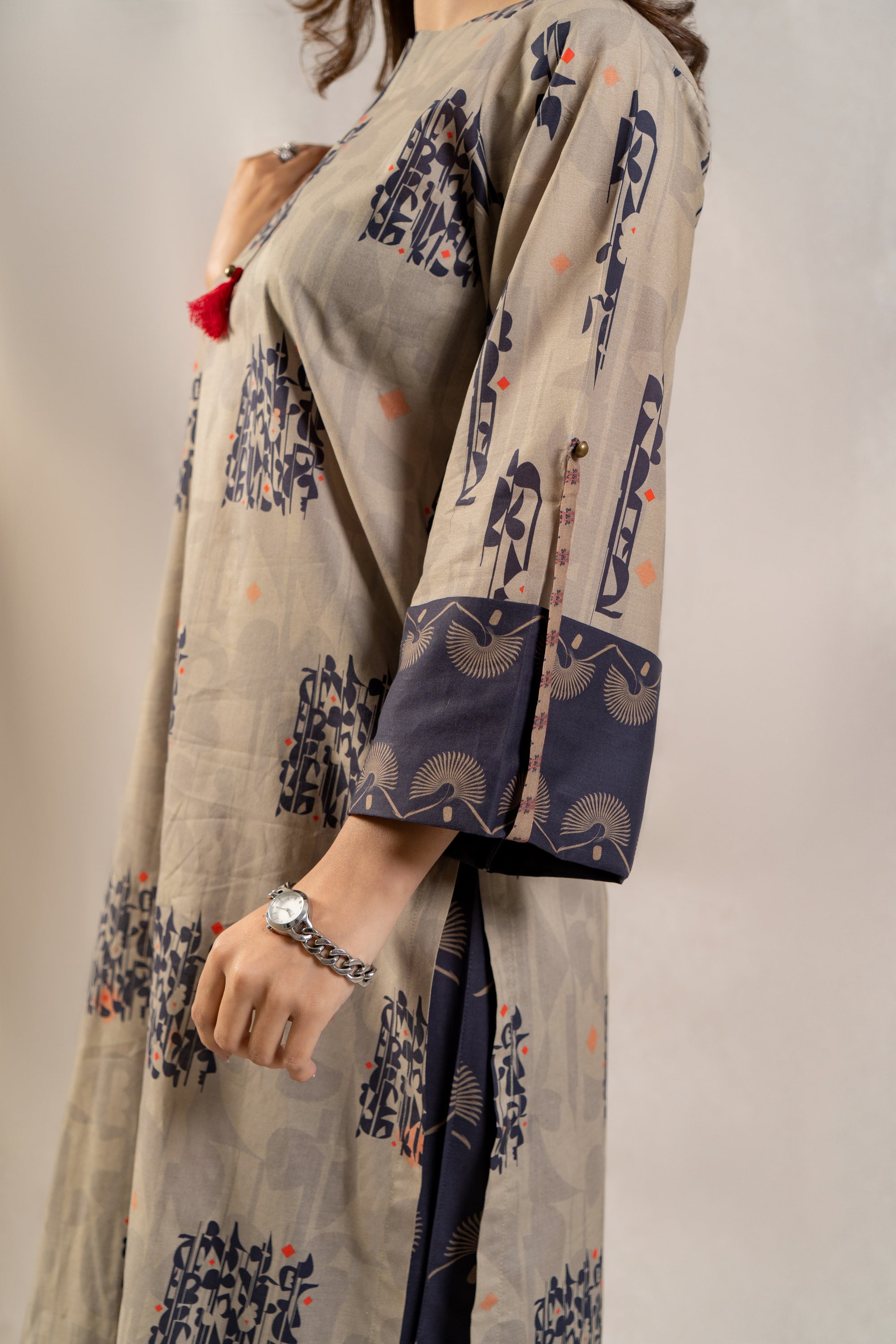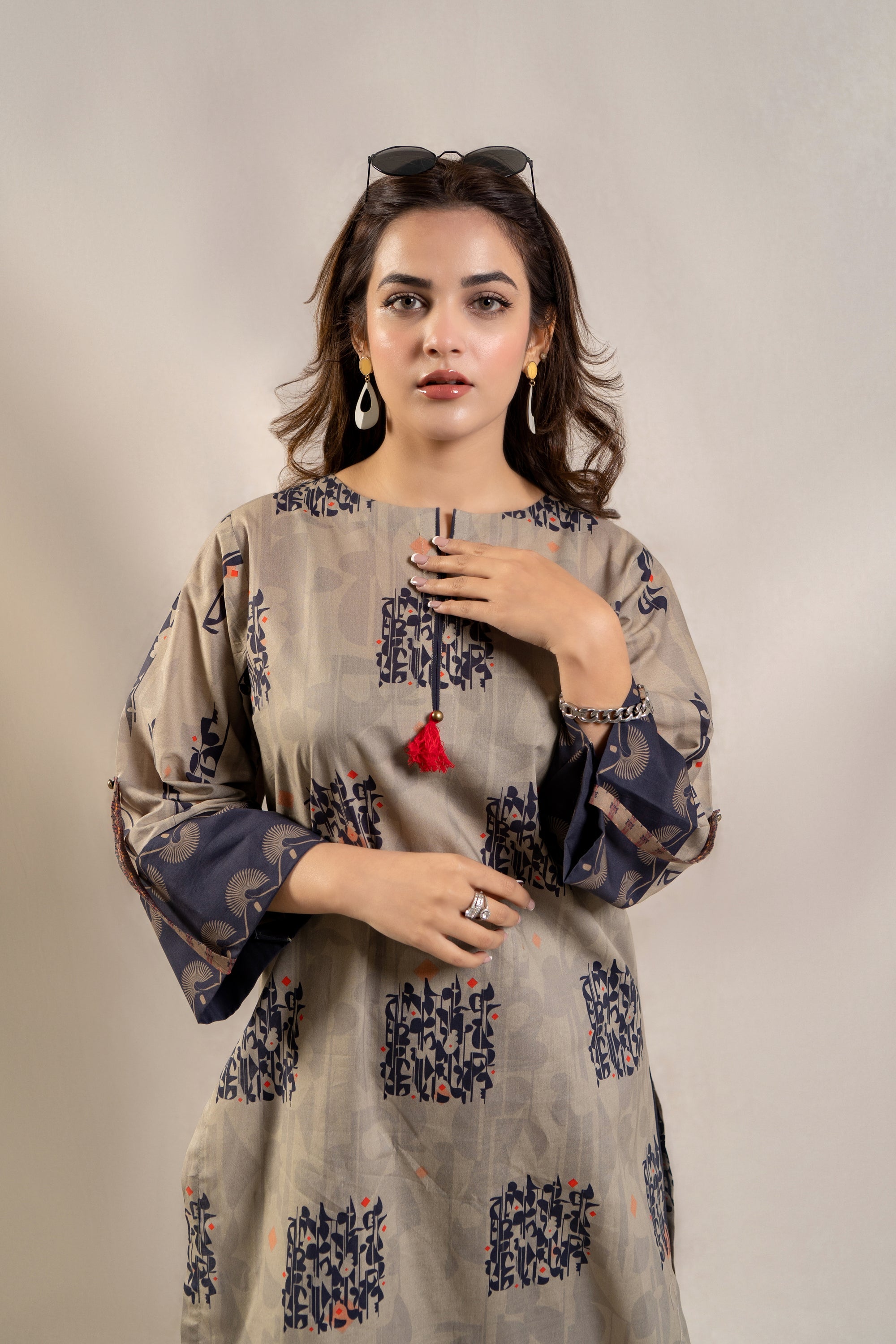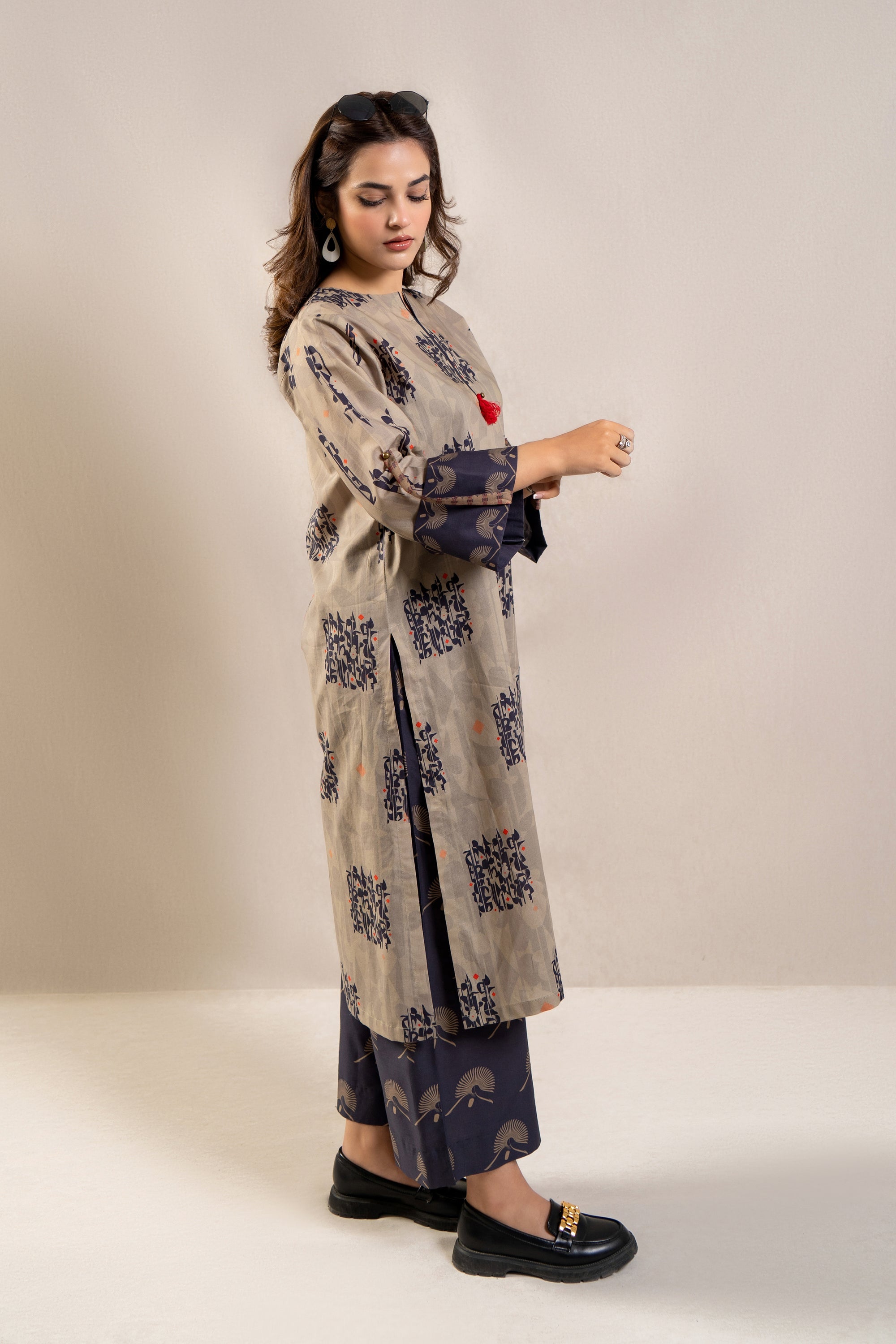 Introducing the ultimate summer ensemble: the ready-to-wear 2-piece printed lawn suit! This standout outfit features a stunning long printed shirt adorned with folded sleeves, exuding effortless elegance and charm. Paired with contrasting loose trousers, this ensemble offers both style and comfort, perfect for any occasion under the sun. Whether you're lounging by the poolside or attending a stylish soirée, this ensemble promises to make a statement and elevate your summer wardrobe to new heights.