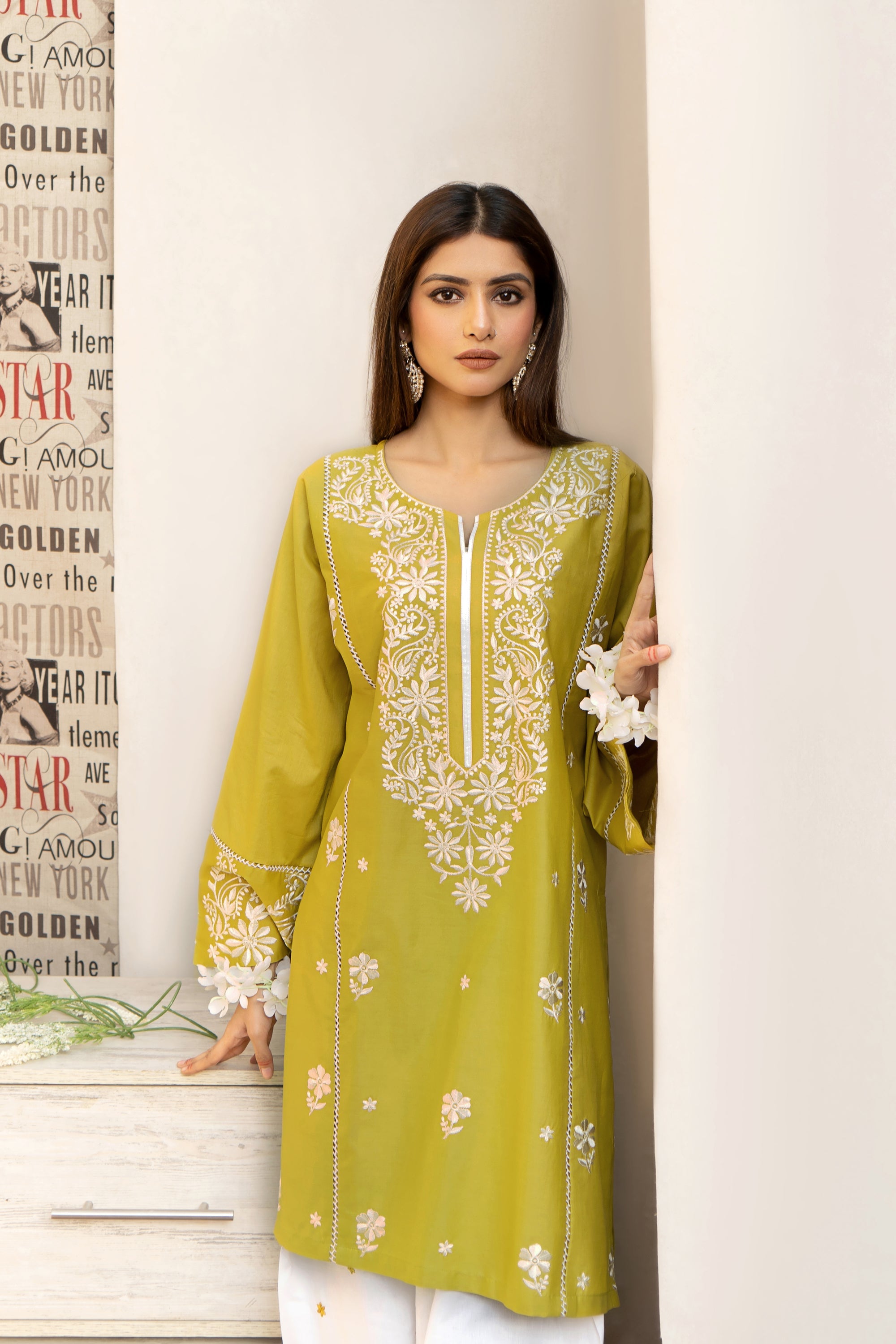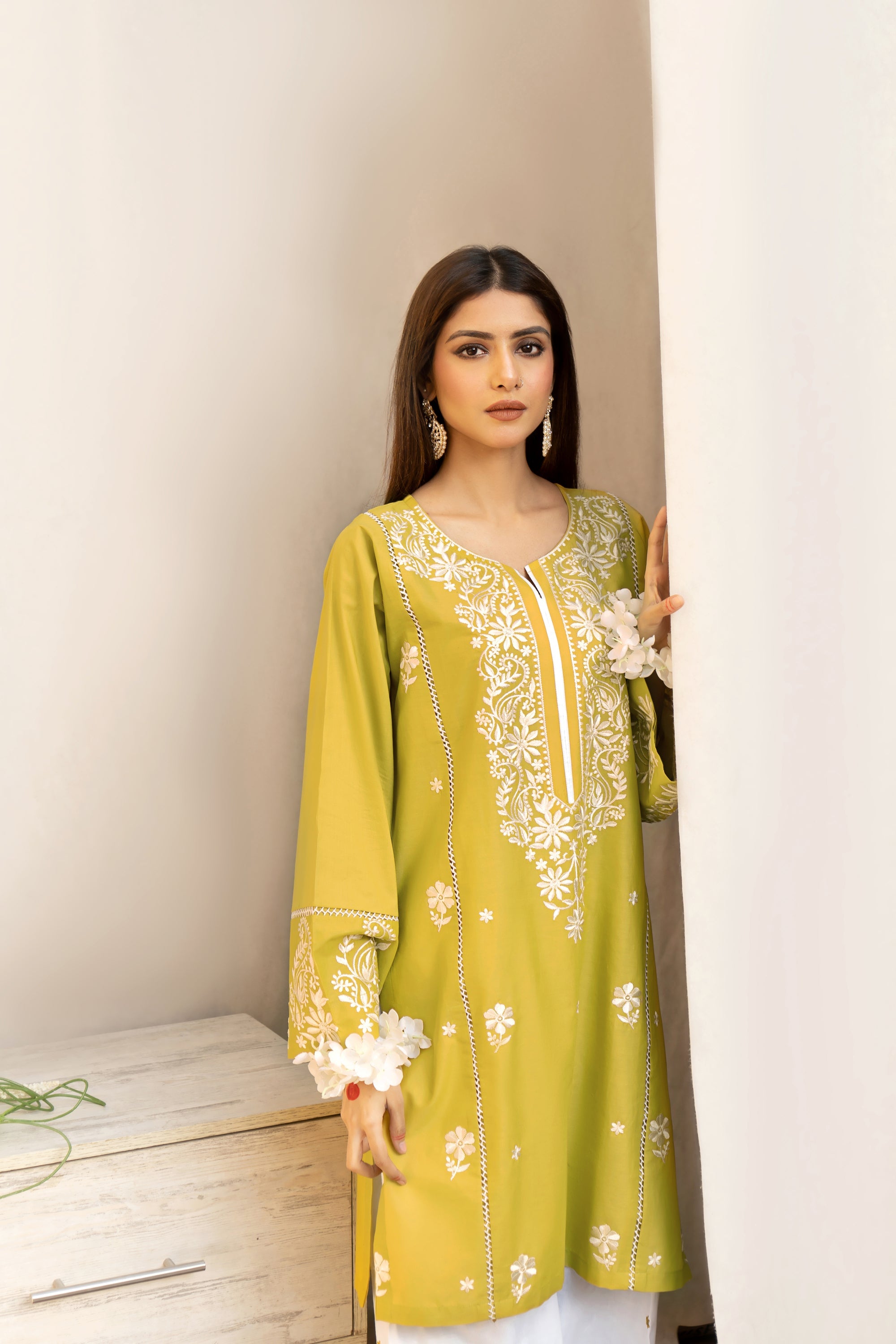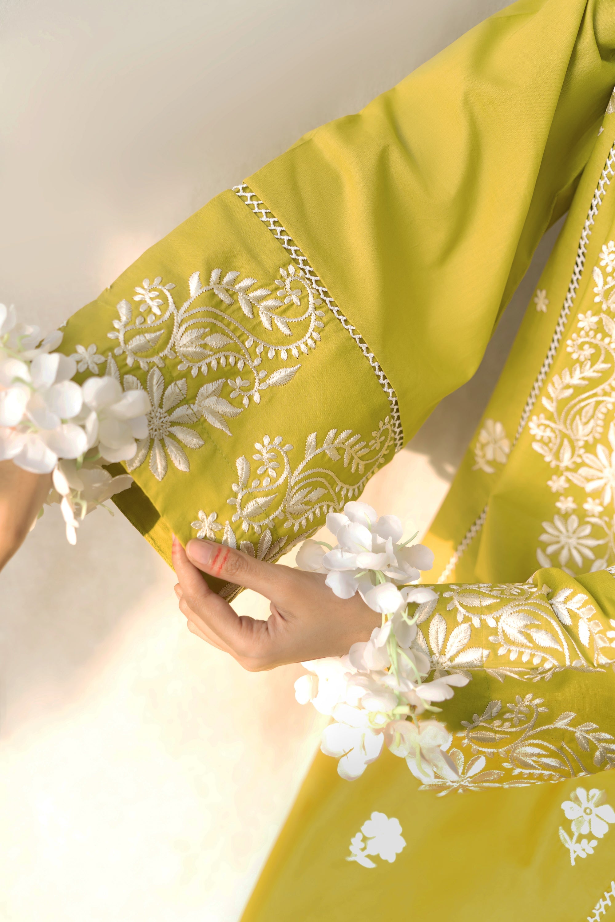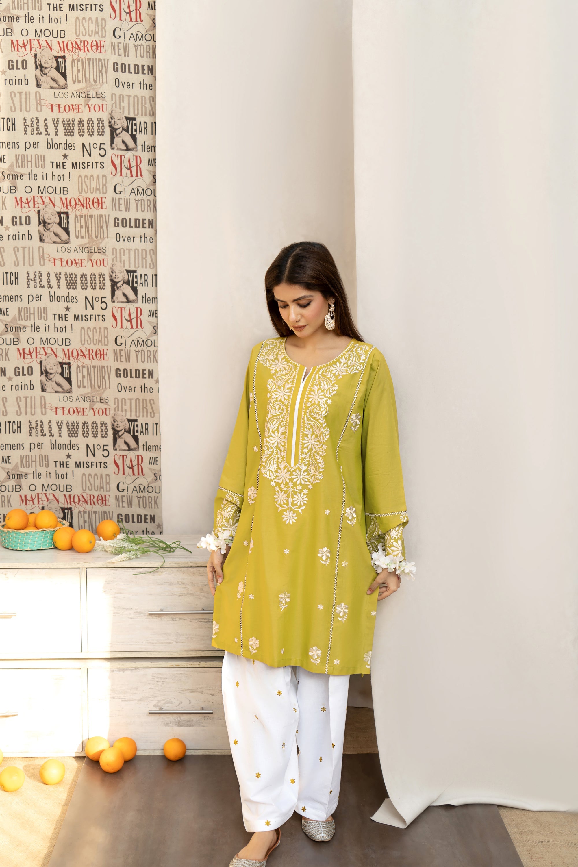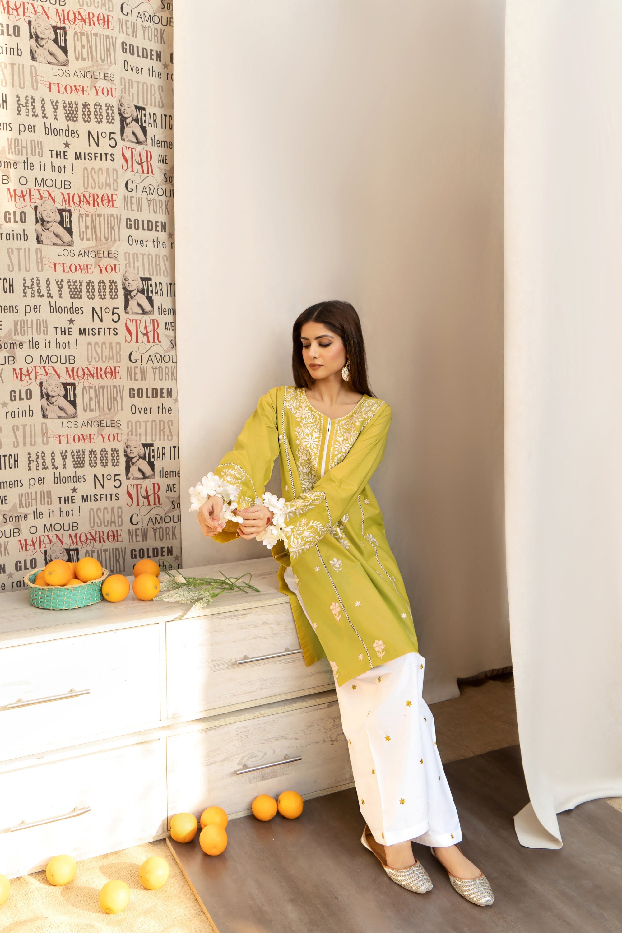 Get ready to elevate your summer style with the must-have ensemble of the season: the Ready-to-Wear 2-Piece Embroidered Suit! This effortlessly chic outfit features a short shirt adorned with stunning floral embroidery delicately gracing the neckline, exuding feminine charm with every detail. But the magic doesn't stop there - a delightful spray of intricate embroidery motifs adorns both the shirt and sleeves, adding a touch of whimsy and sophistication. Paired with a classic shalwar, this ensemble is the epitome of summer desi elegance, promising to turn heads and make a statement wherever you go. Embrace the essence of summer in style with this timeless ensemble!