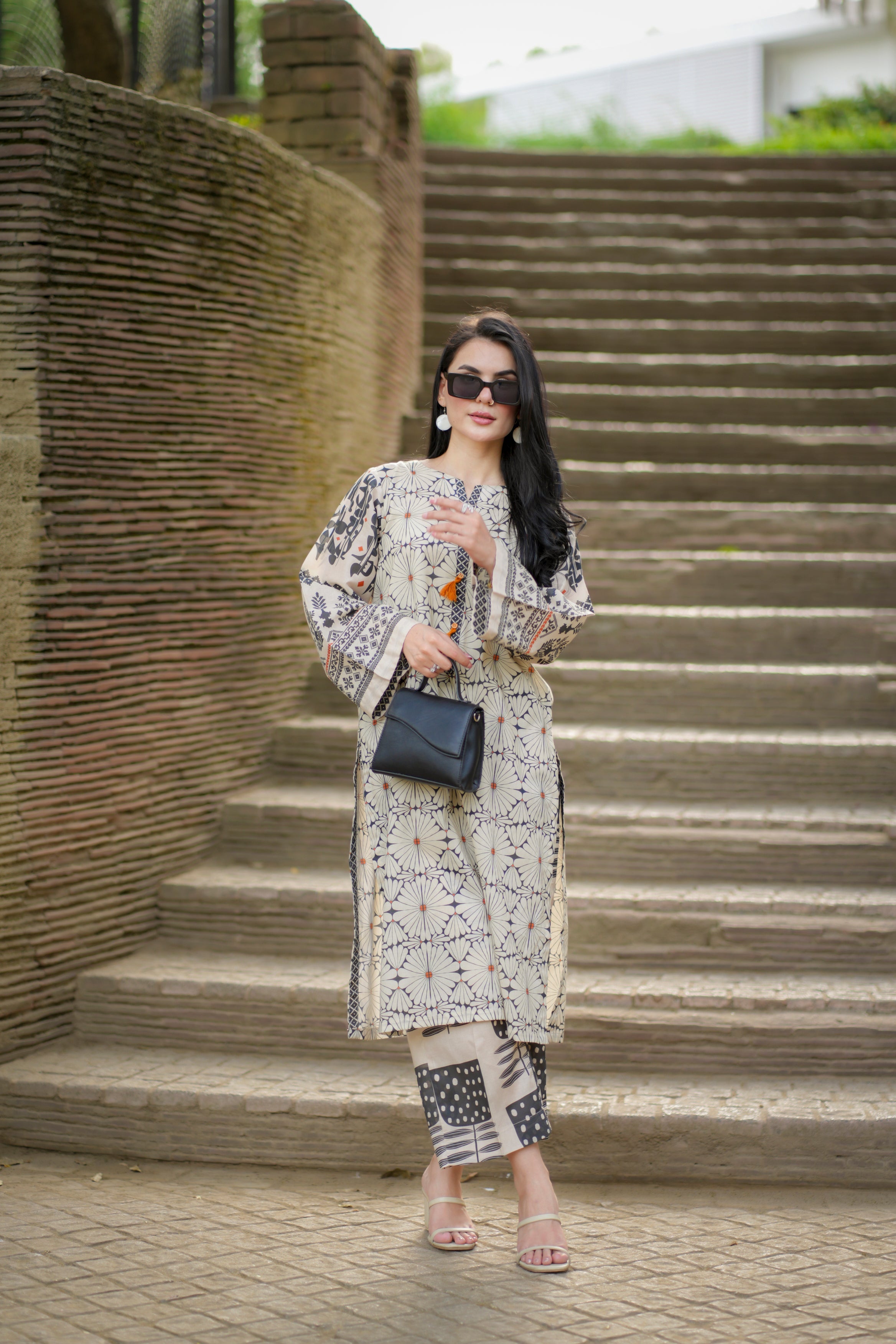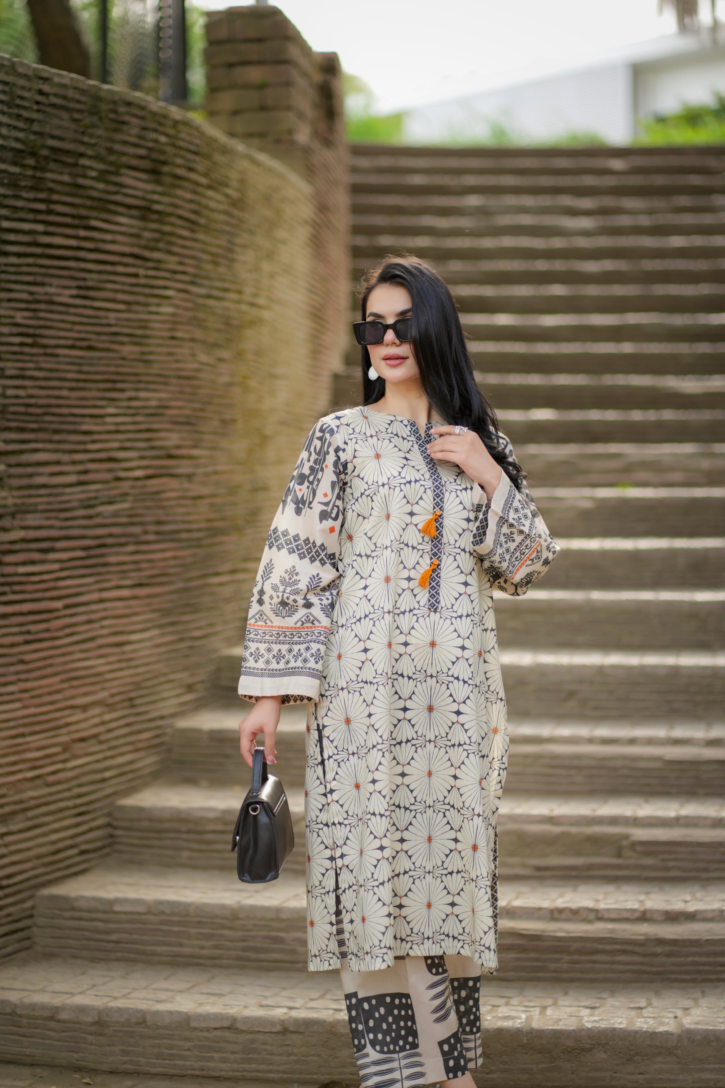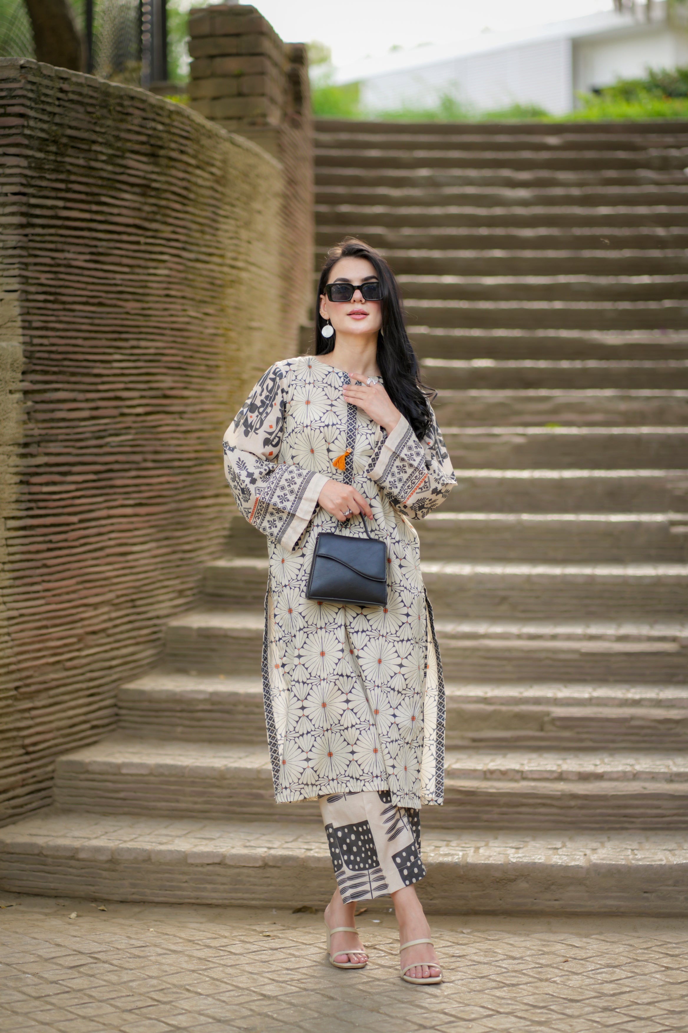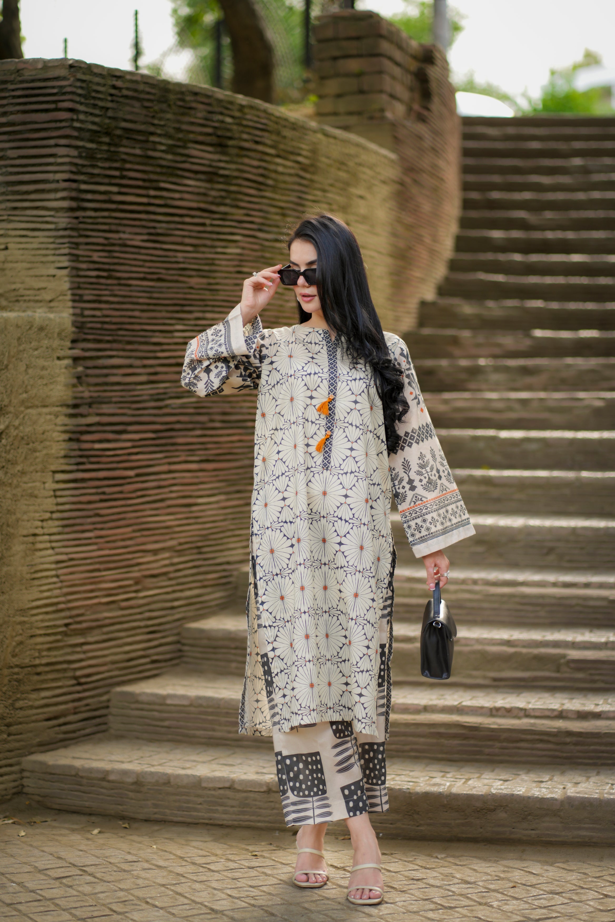 Get set to dazzle in the latest summer essential - the ready-to-wear 2-piece printed lawn suit! This ensemble boasts a breathtaking printed long shirt paired flawlessly with printed loose trousers, offering a fusion of style and comfort that's simply unbeatable. With its vibrant prints and airy silhouette, this outfit is destined to become your go-to choice for all your warm-weather escapades. Whether you're out for brunch with friends or exploring the city streets, this chic ensemble ensures you're always on-trend and effortlessly chic.