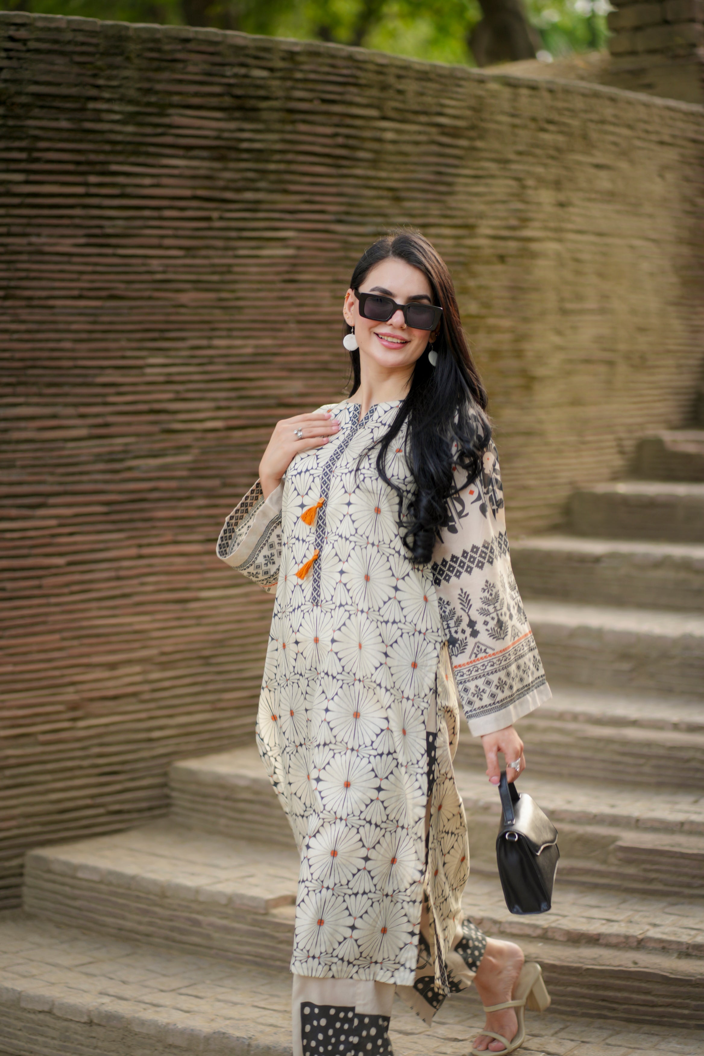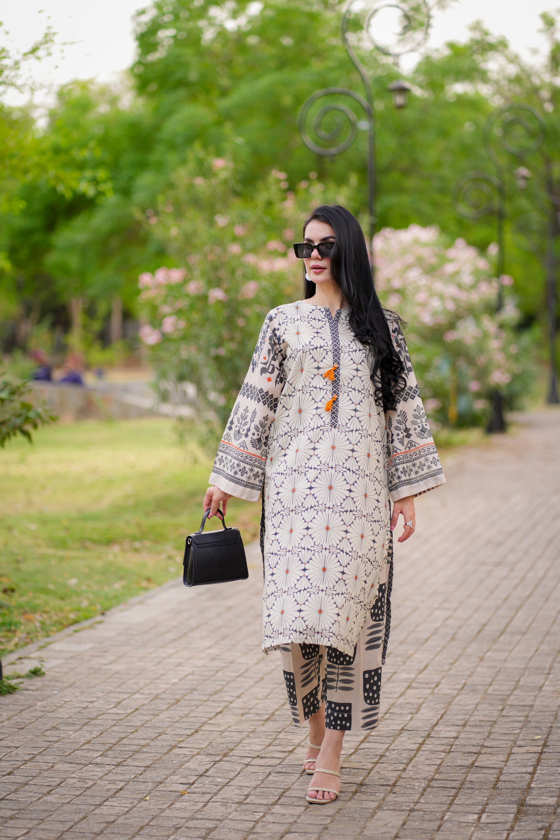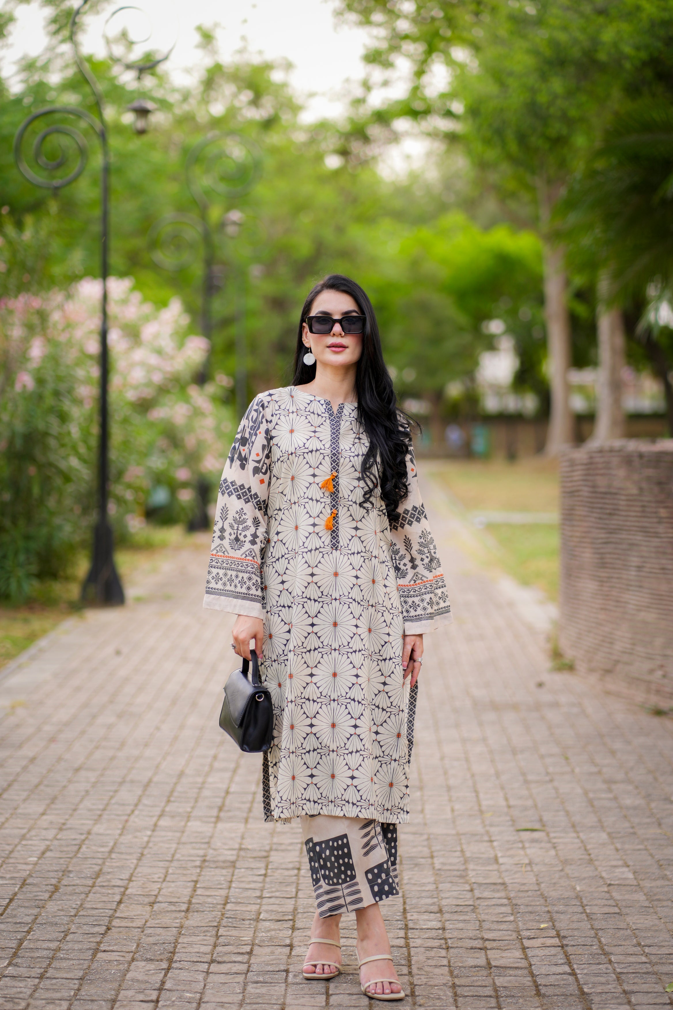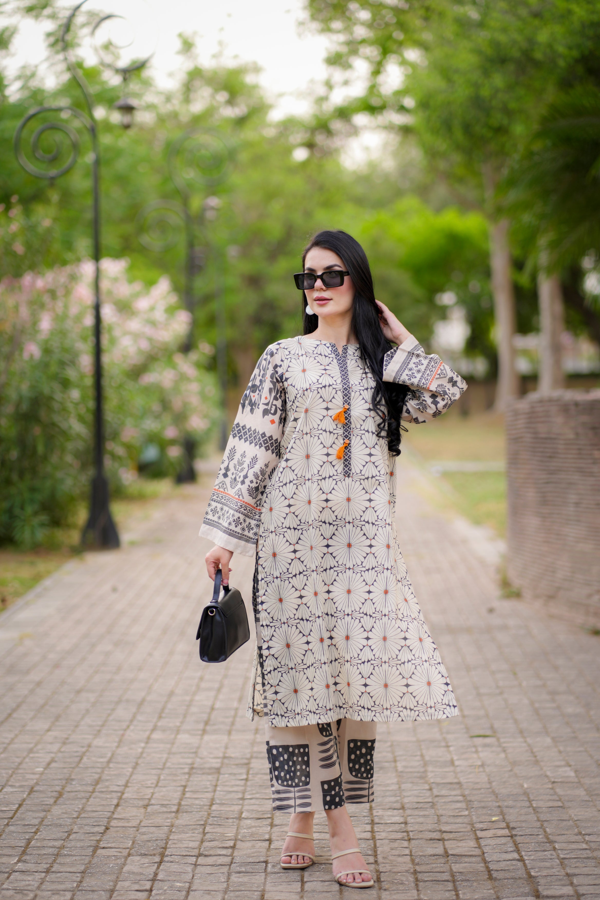 Get set to dazzle in the latest summer essential - the ready-to-wear 2-piece printed lawn suit! This ensemble boasts a breathtaking printed long shirt paired flawlessly with printed loose trousers, offering a fusion of style and comfort that's simply unbeatable. With its vibrant prints and airy silhouette, this outfit is destined to become your go-to choice for all your warm-weather escapades. Whether you're out for brunch with friends or exploring the city streets, this chic ensemble ensures you're always on-trend and effortlessly chic.