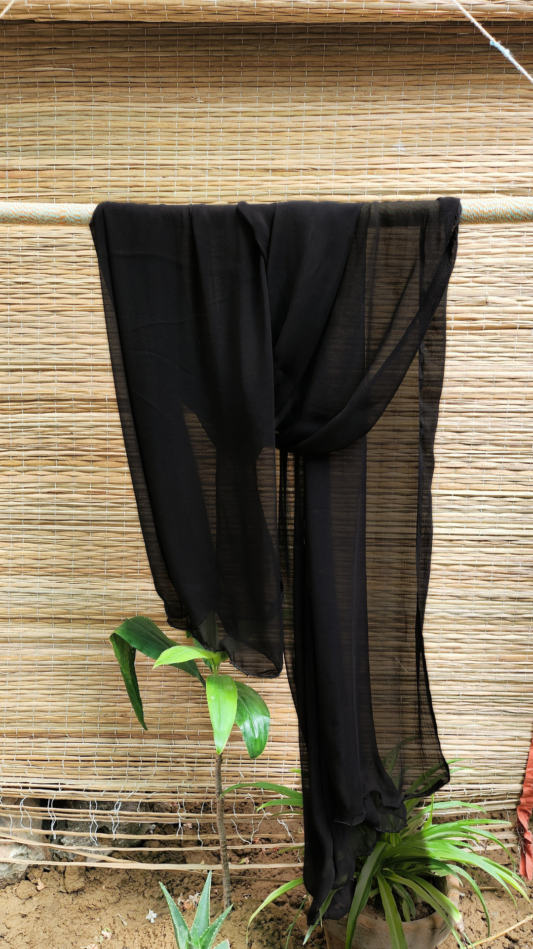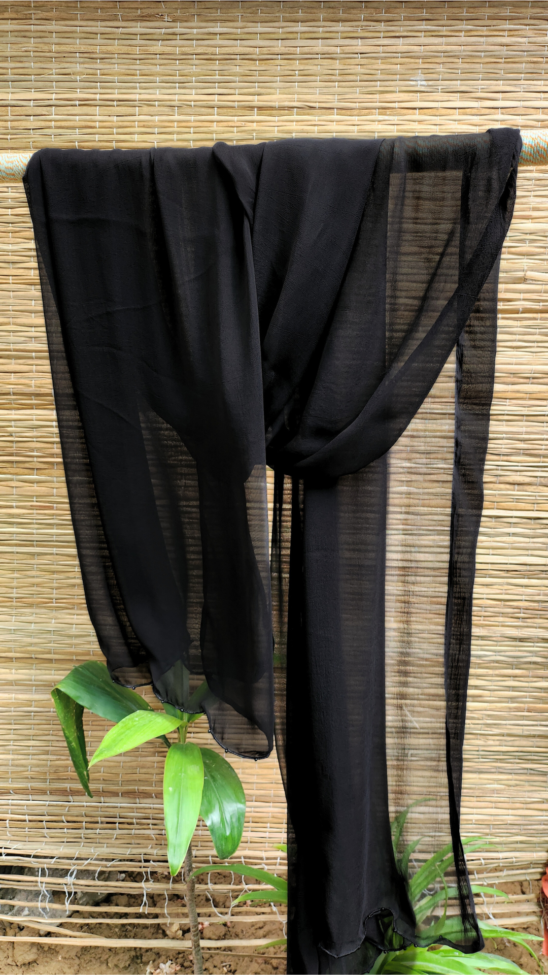 2.5 yards fine quality black chiffon dupatta with four-side fancy edging.