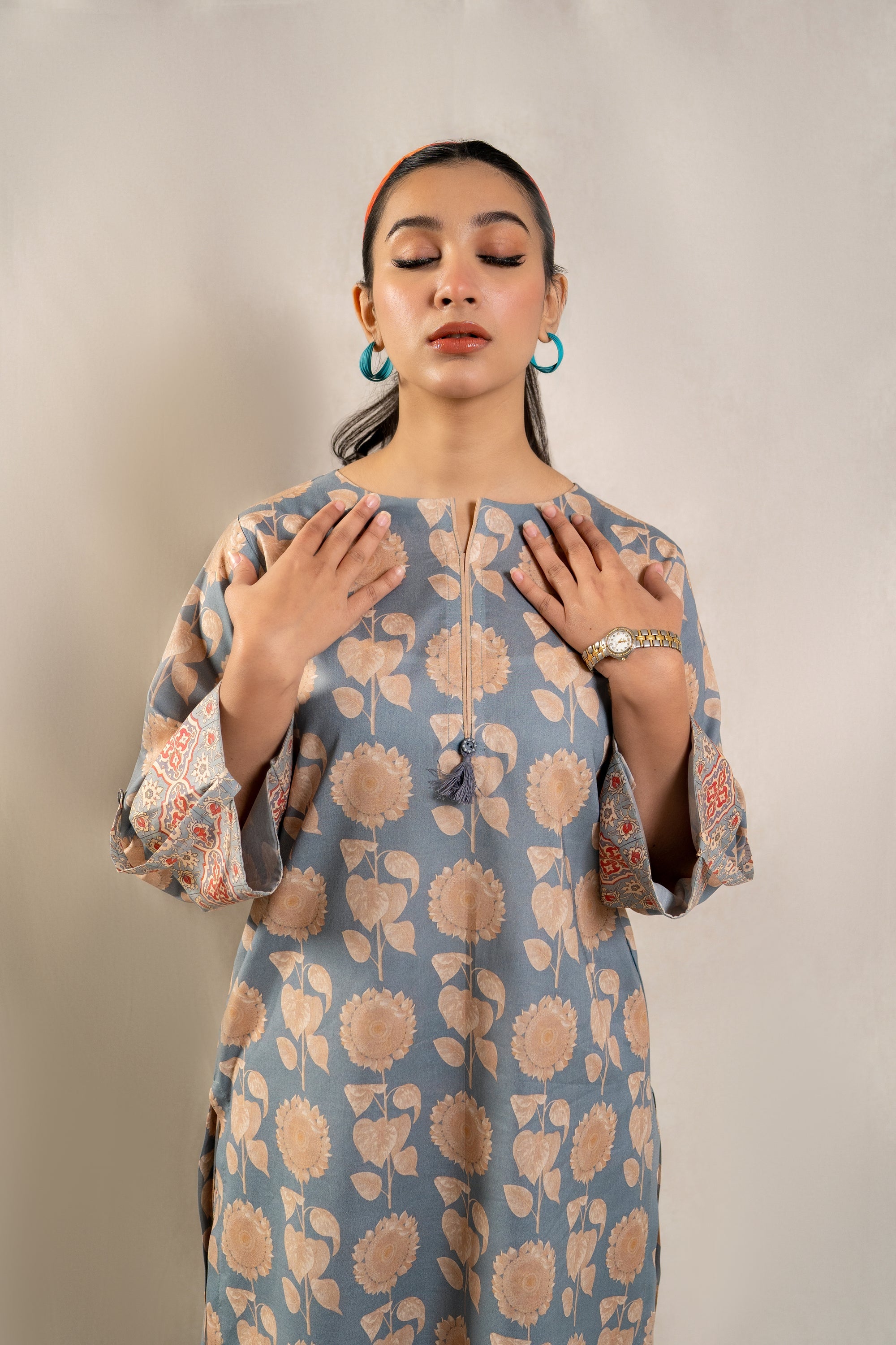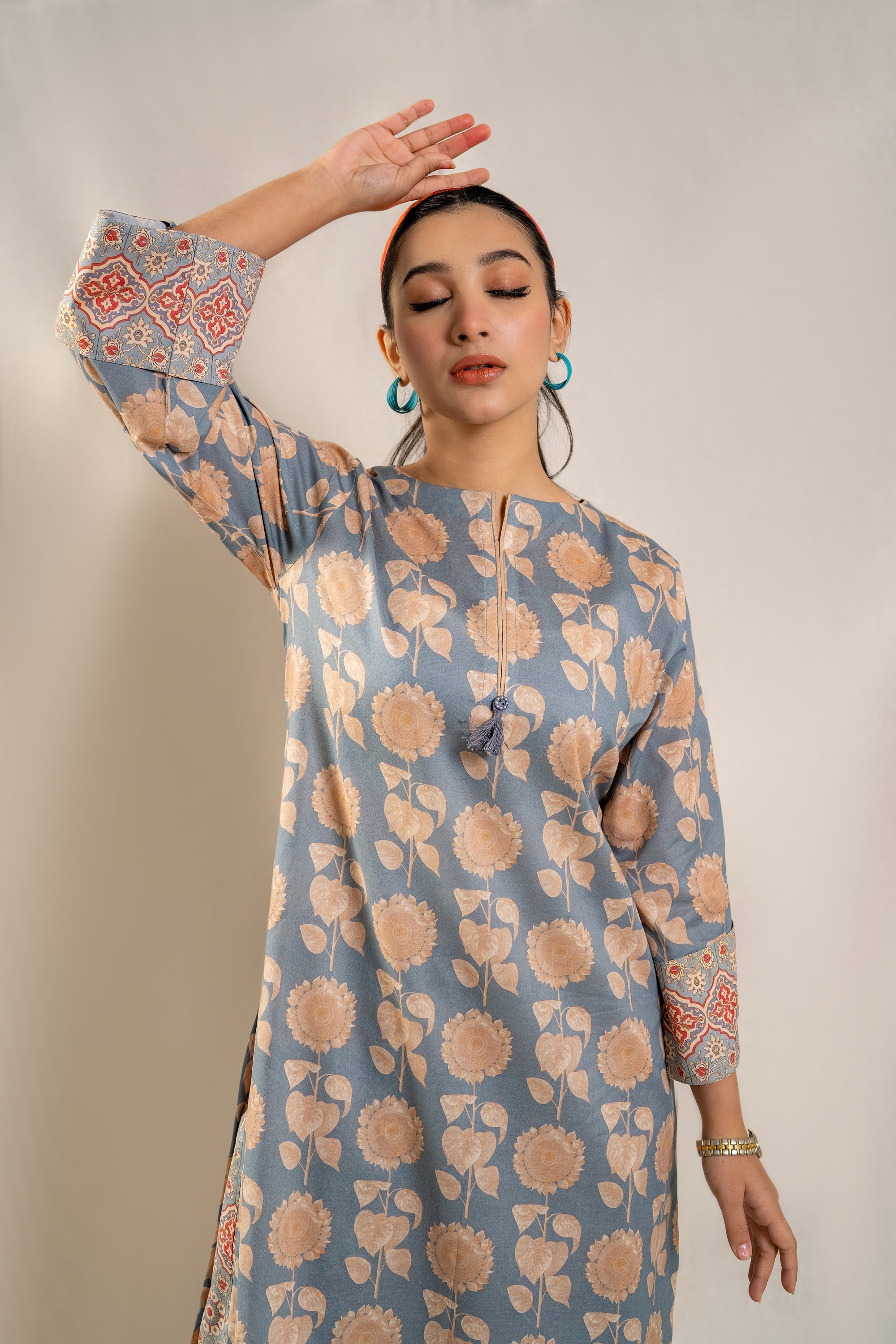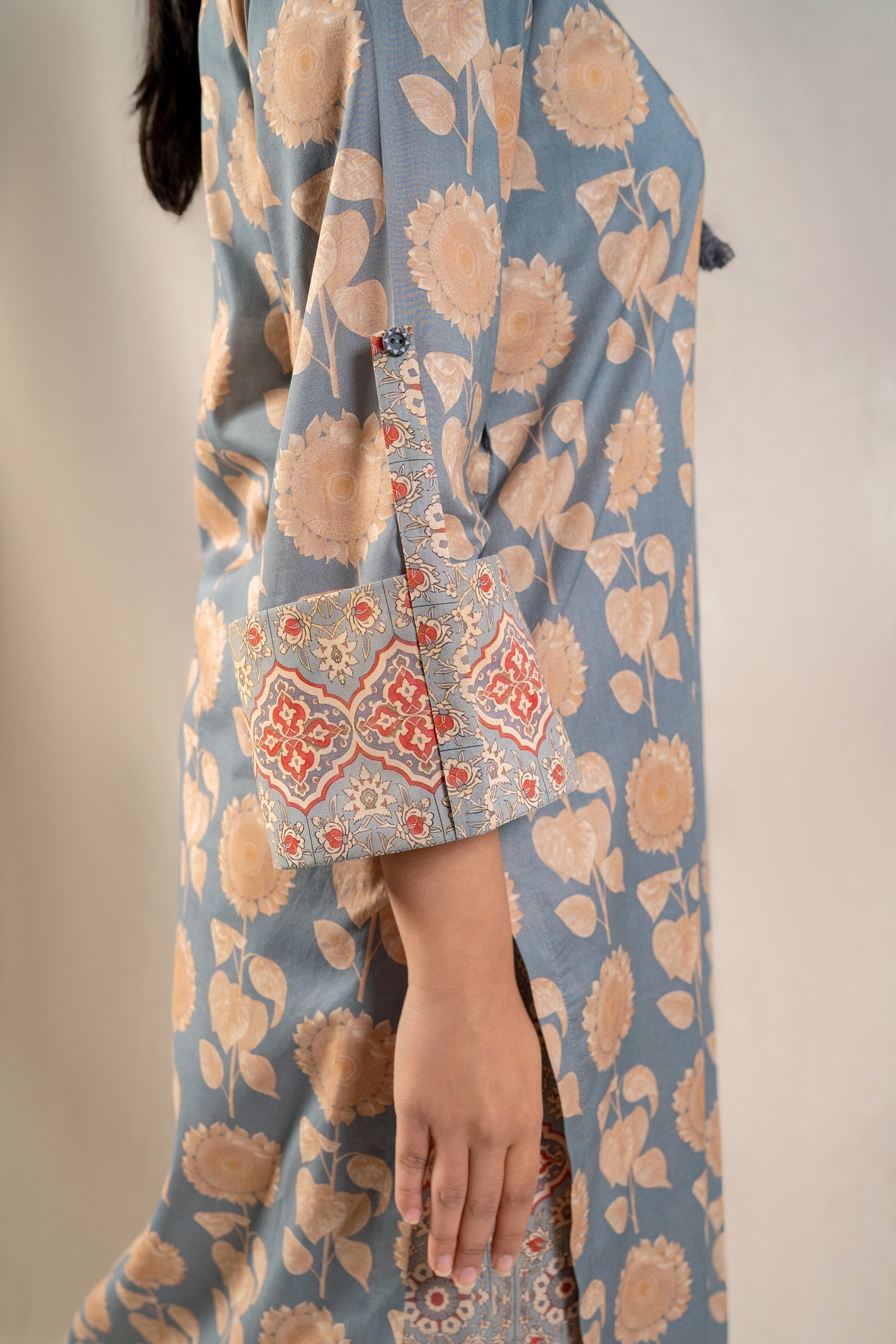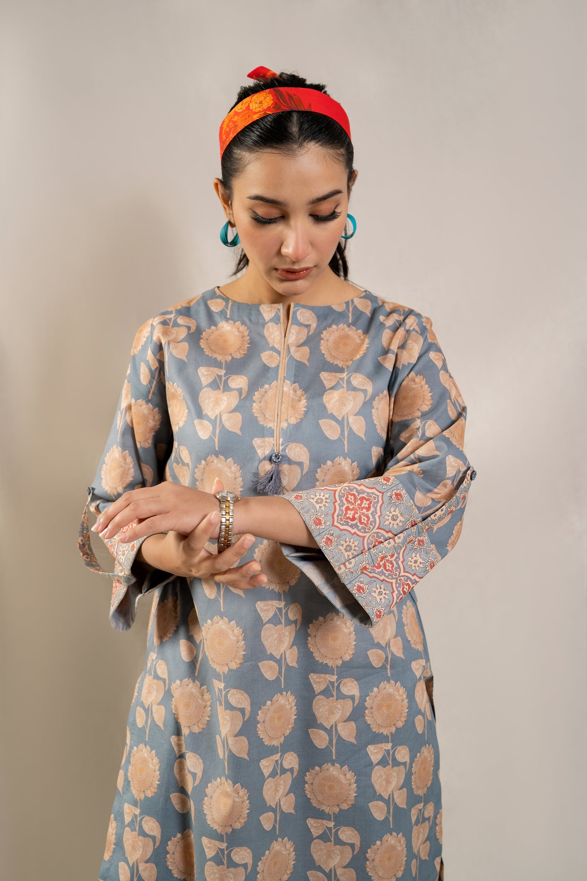 Elevate your summer wardrobe with the must-have ready-to-wear 2-piece lawn printed suit! This ensemble features a stunning long printed shirt adorned with folded sleeves, exuding effortless elegance and chic style. Paired with contrasting printed loose trousers, this outfit is a statement piece that promises comfort and sophistication. Whether you're strolling along the beach or exploring the city streets, this ensemble is a definite summer essential that ensures you stay on-trend and fashion-forward wherever you go.
