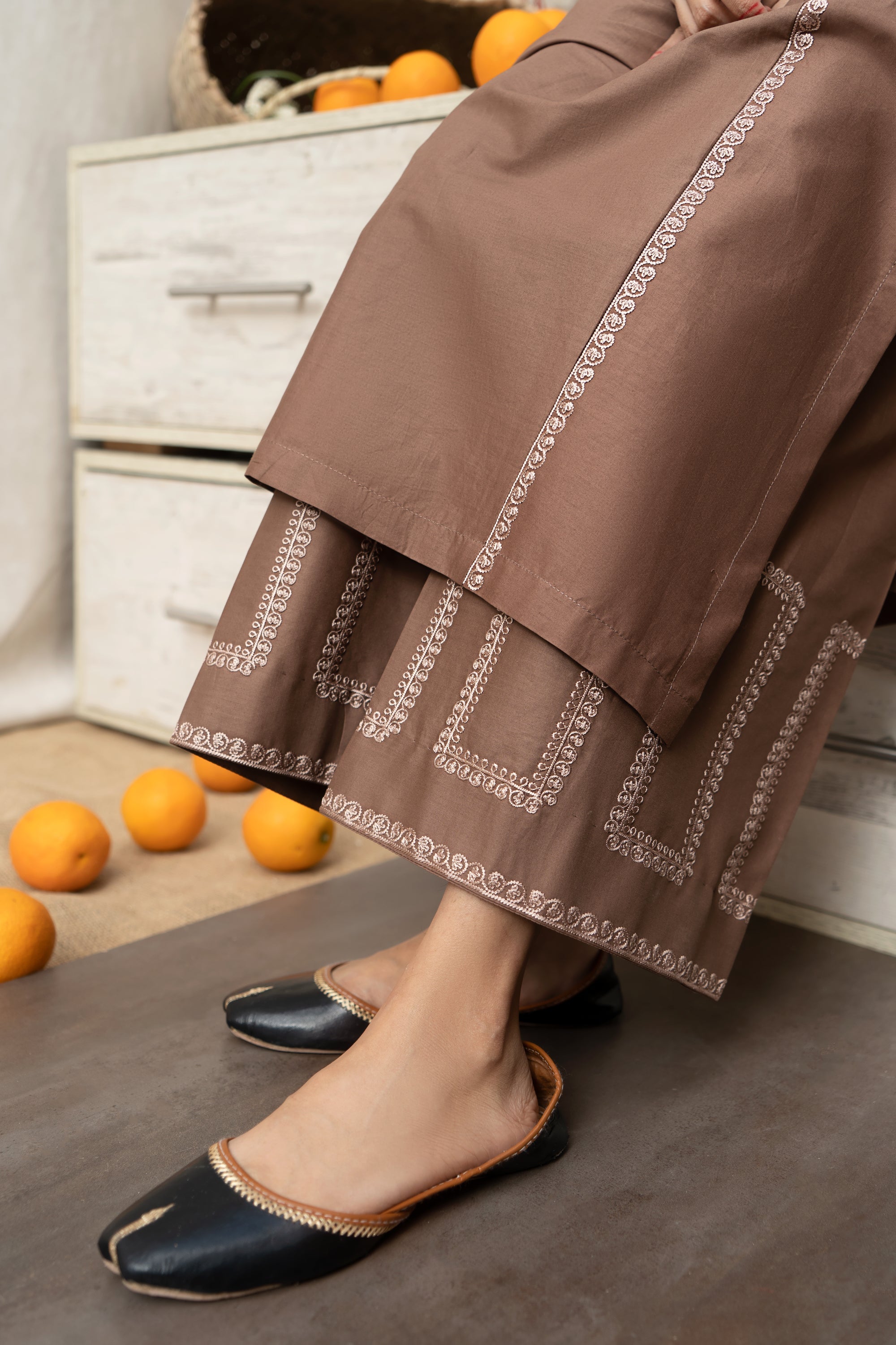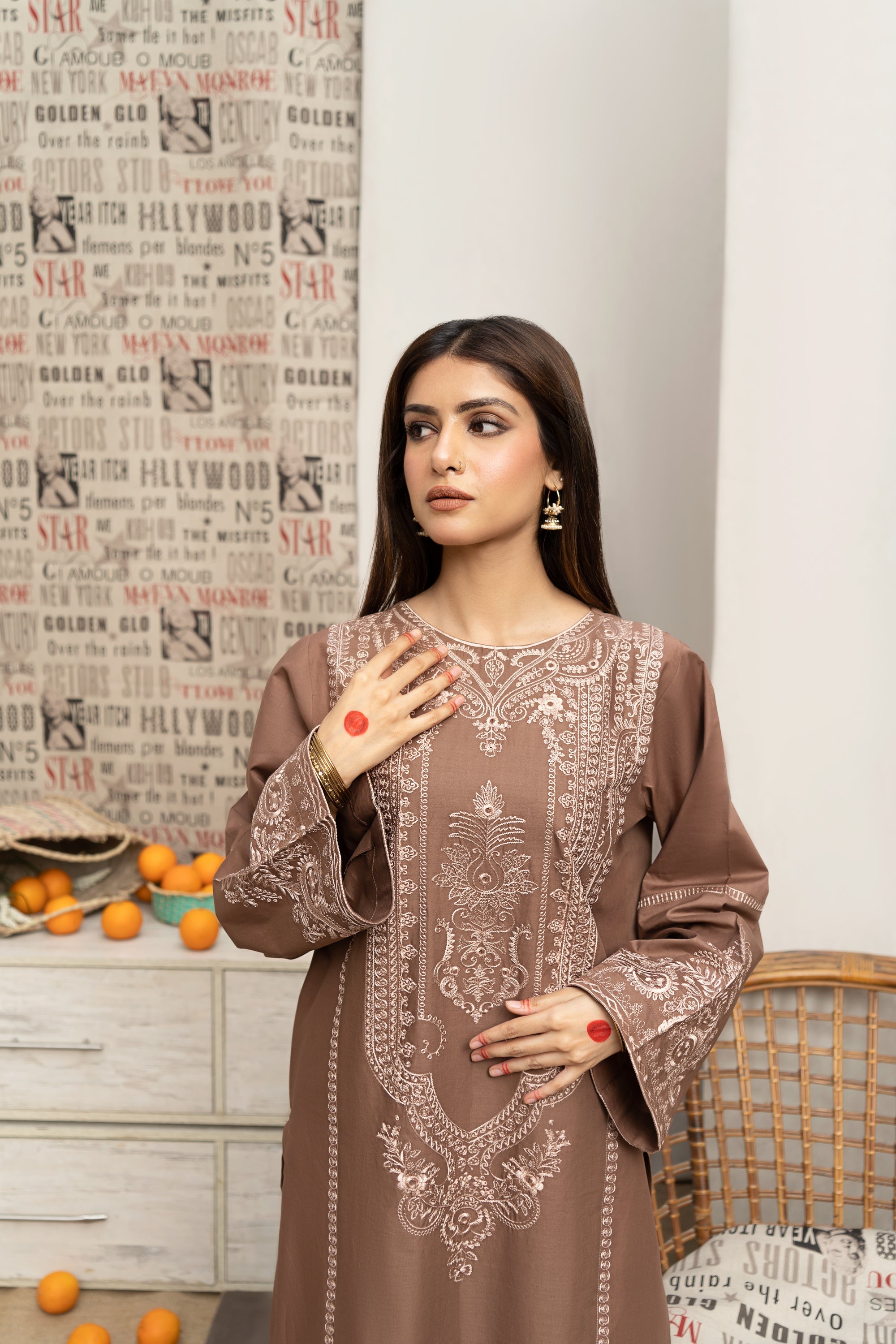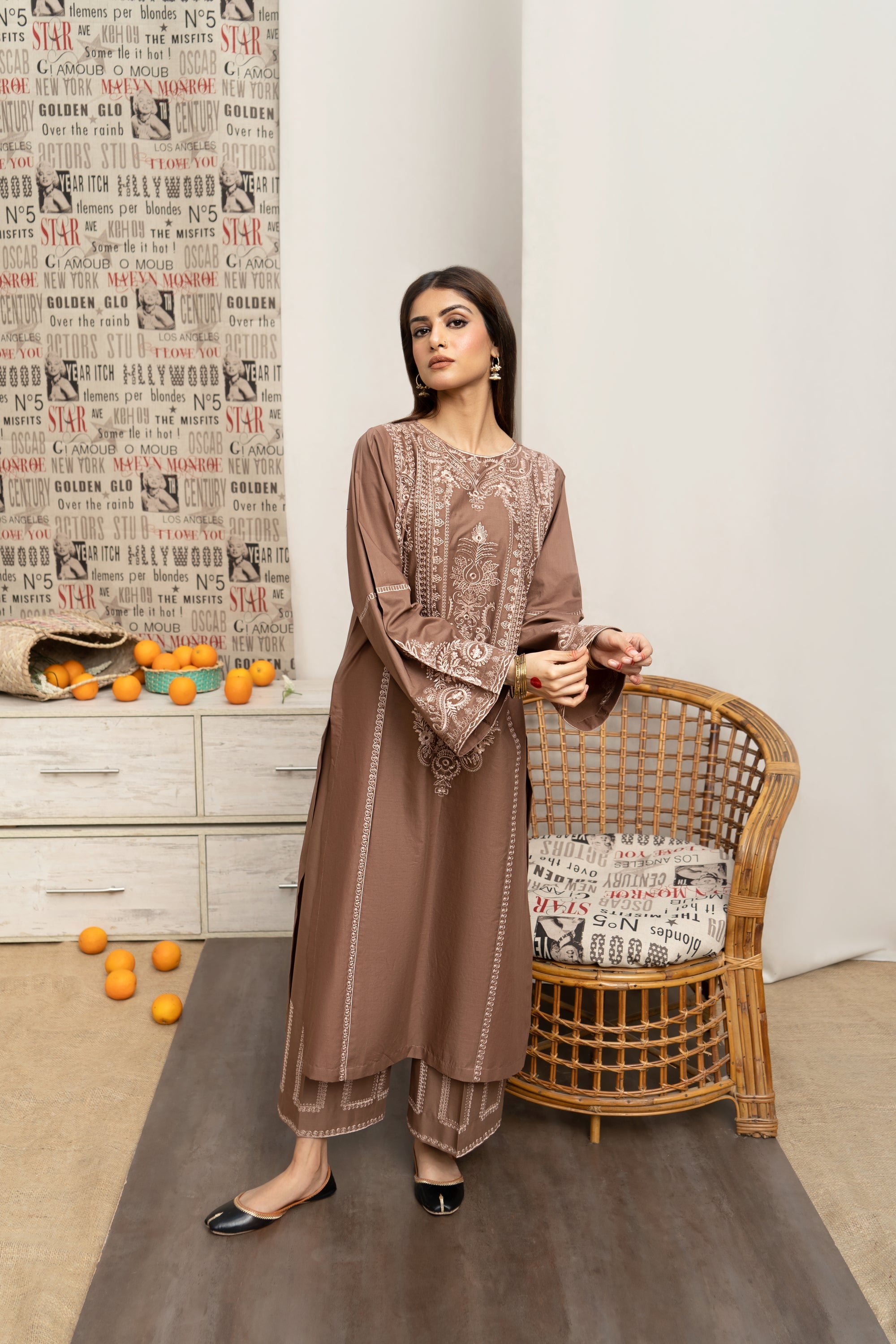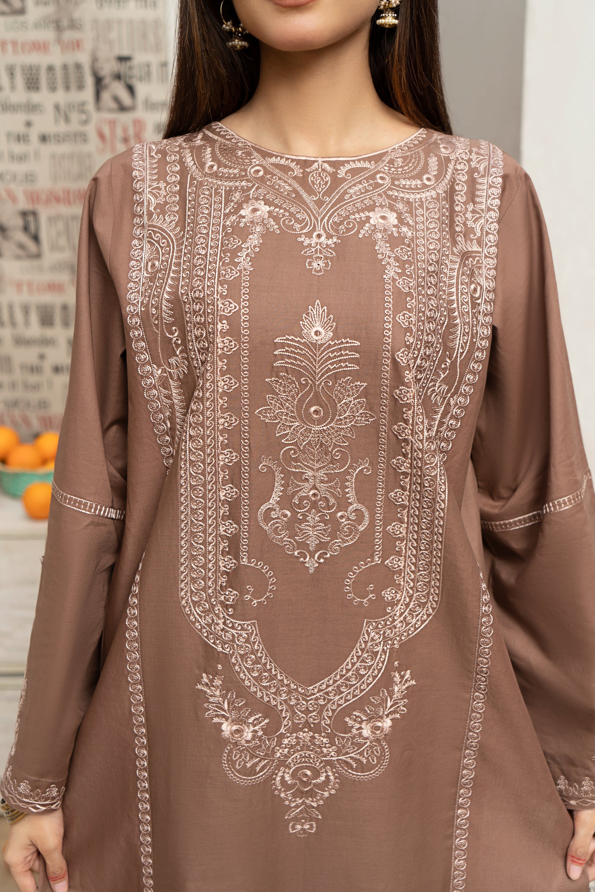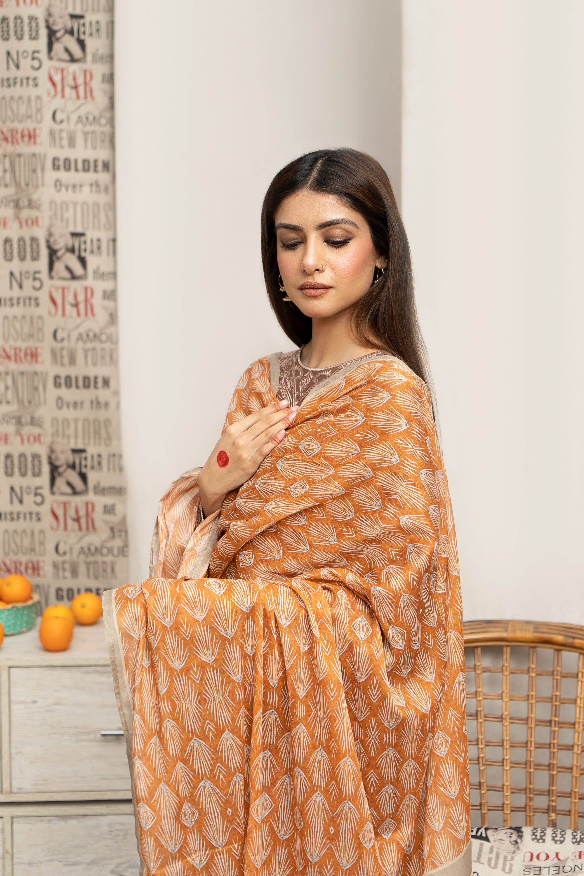 Get set for effortless elegance with this ready-to-wear 3-piece embroidered lawn suit, matched with a printed voile dupatta. The shirt boasts subtle tone-on-tone embroidery along the front neckline, complemented by captivating embroidered motifs on the sleeves. Complete the ensemble with embroidered loose trousers for a chic and comfortable look that's perfect for any occasion.