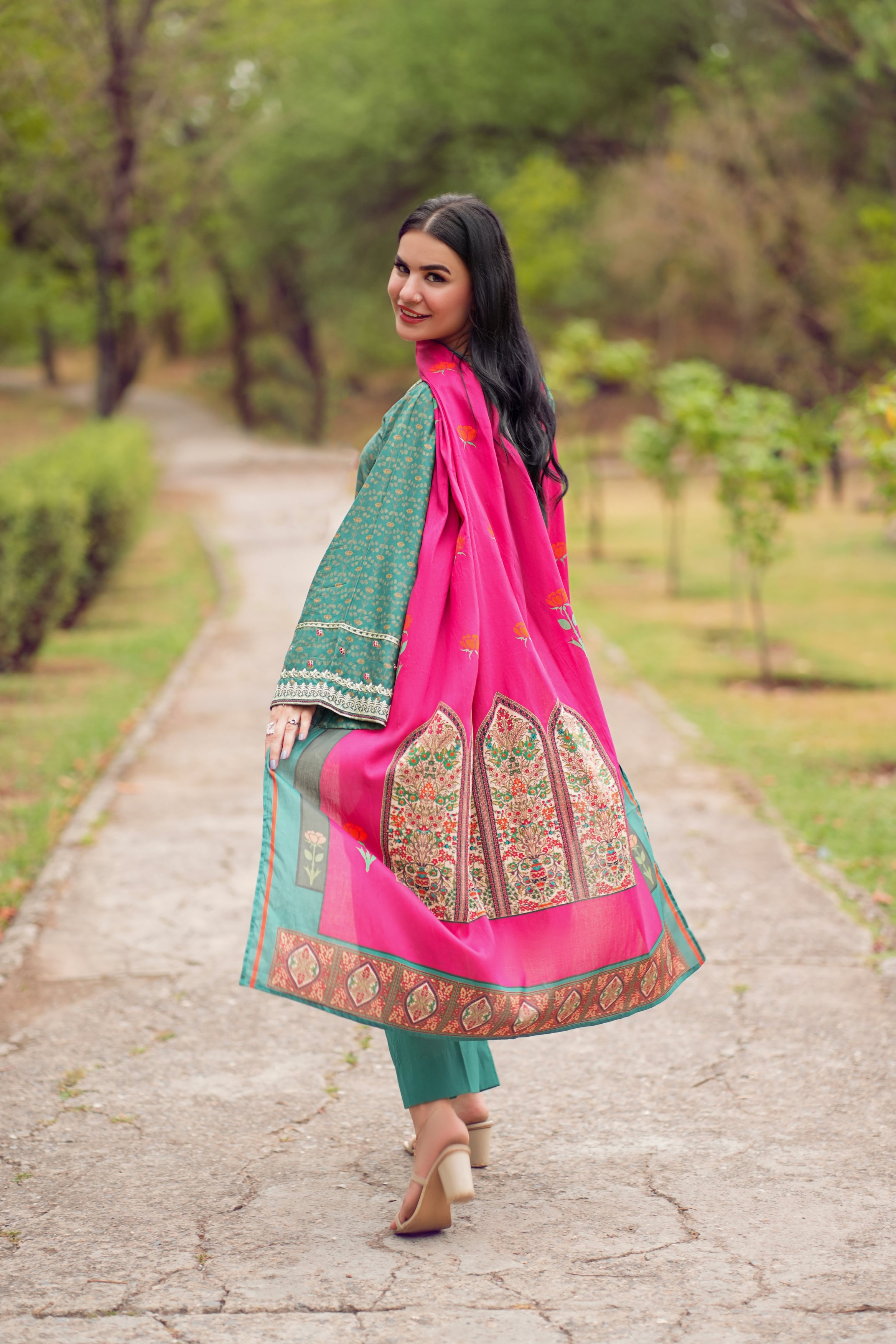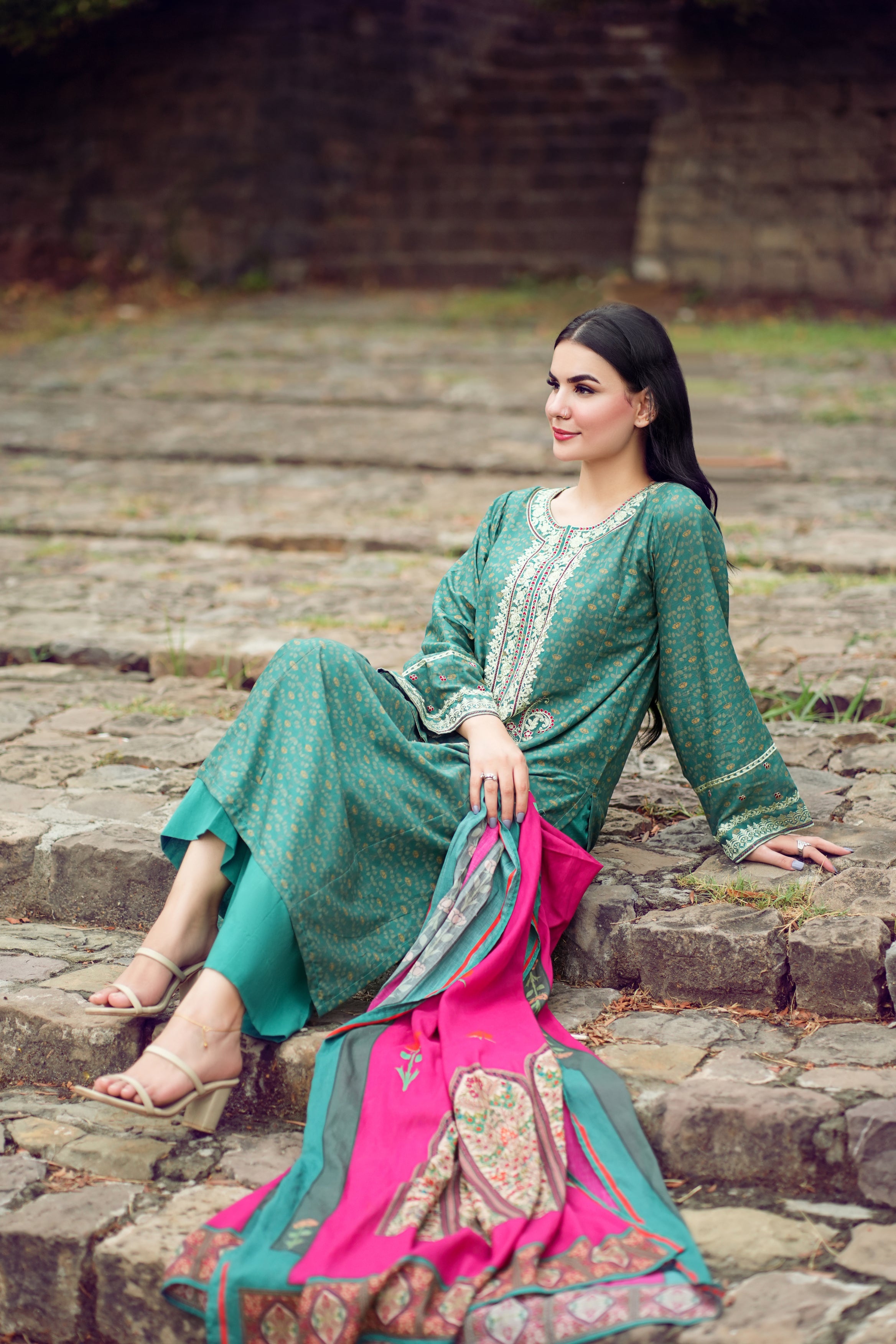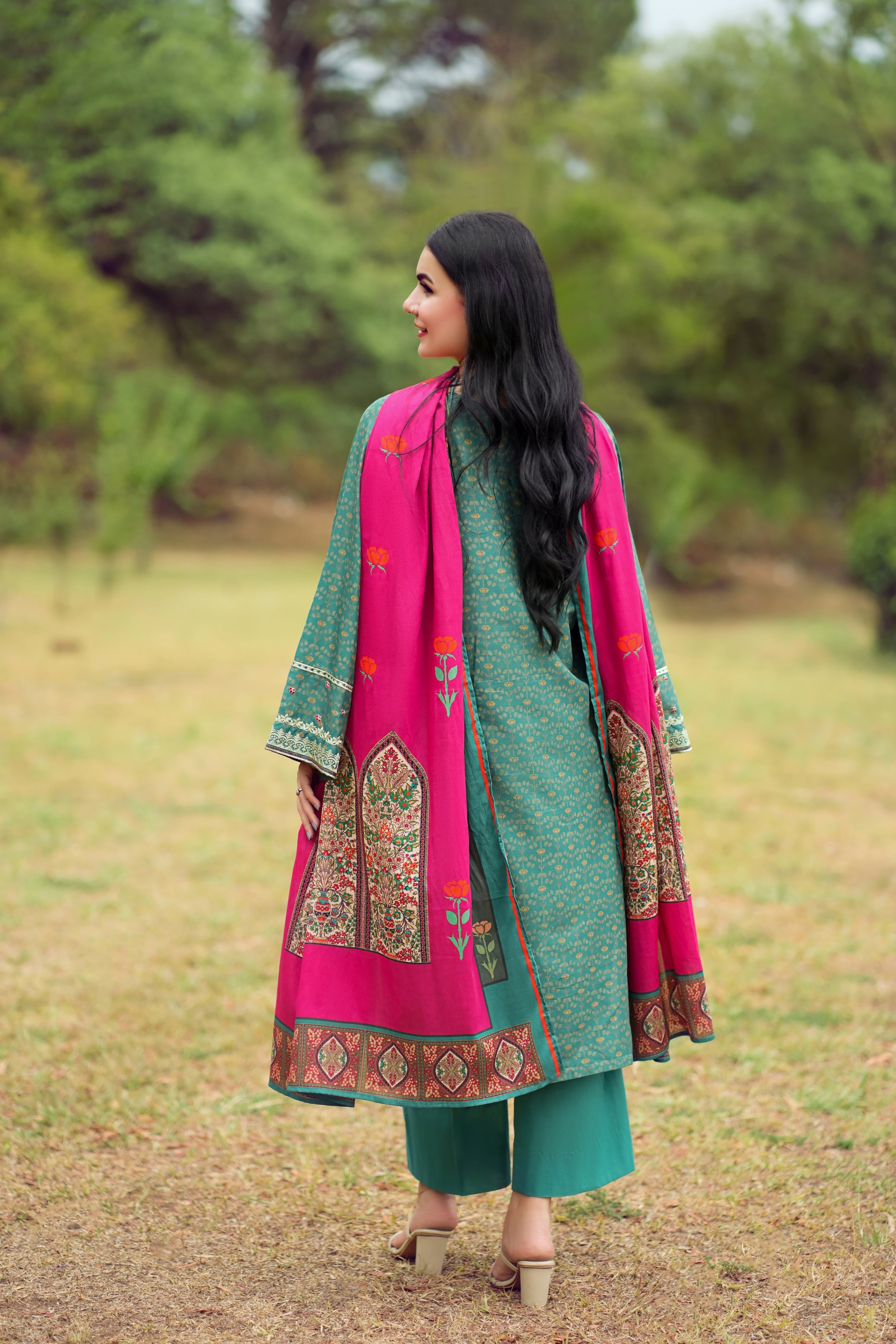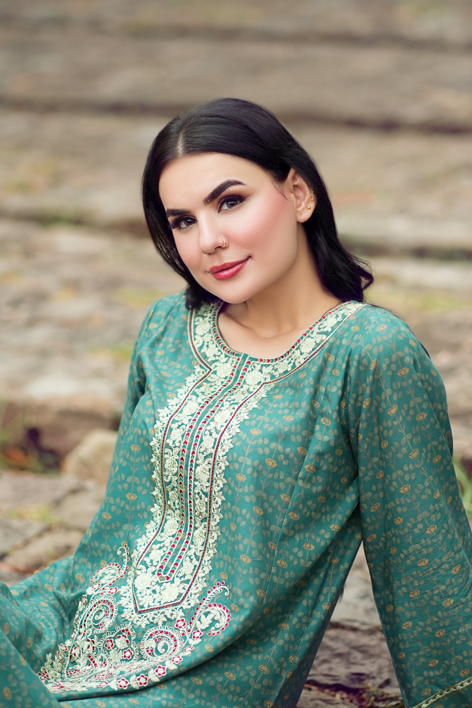 Experience comfort and style with ARYA 2 - a ready-to-wear 3Pc lawn suit. This elegant ensemble features a beautifully printed shirt with embroidery on the neckline and sleeves. Paired with a contrasting voile dupatta and plain loose trousers, it offers effortless elegance for any occasion.