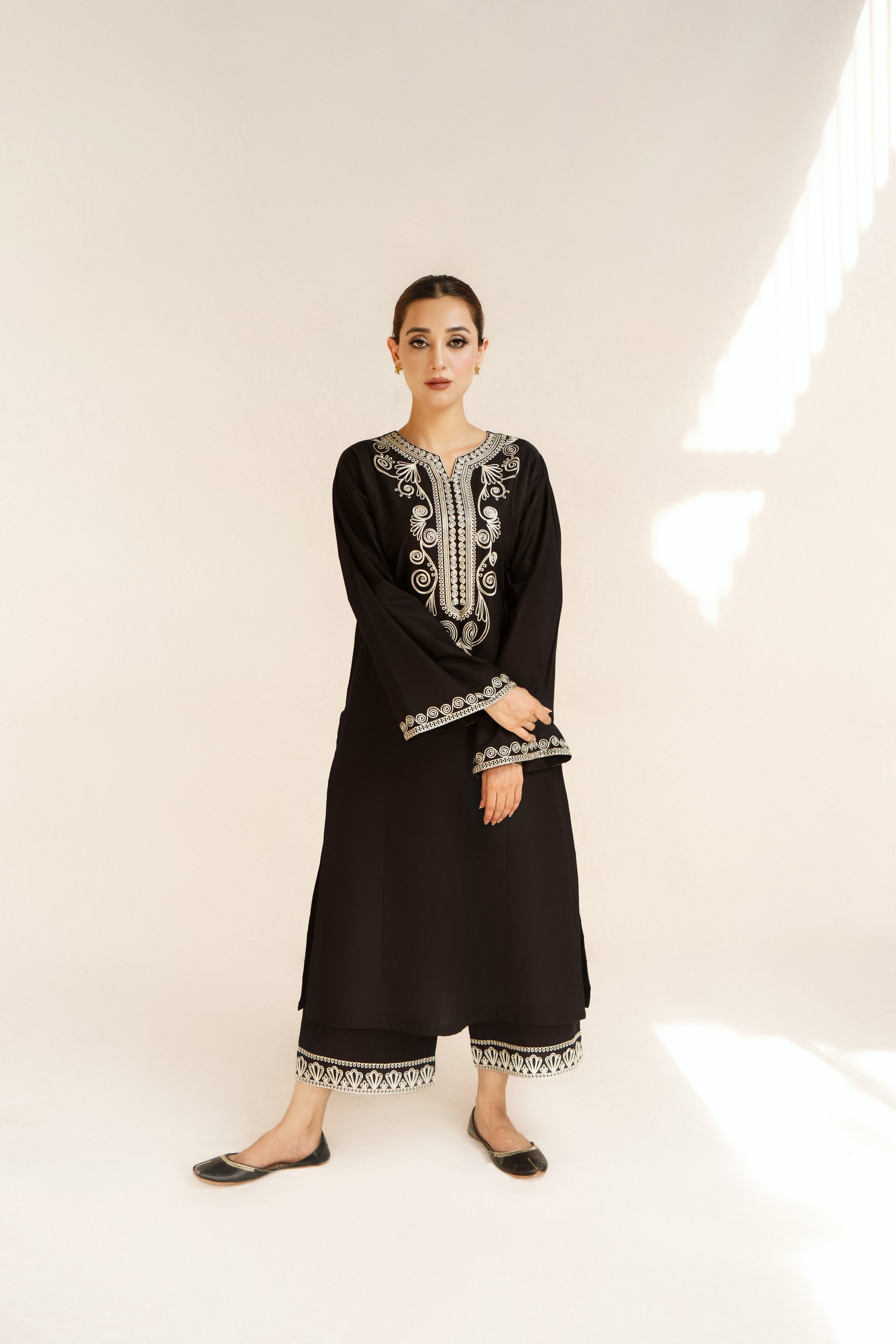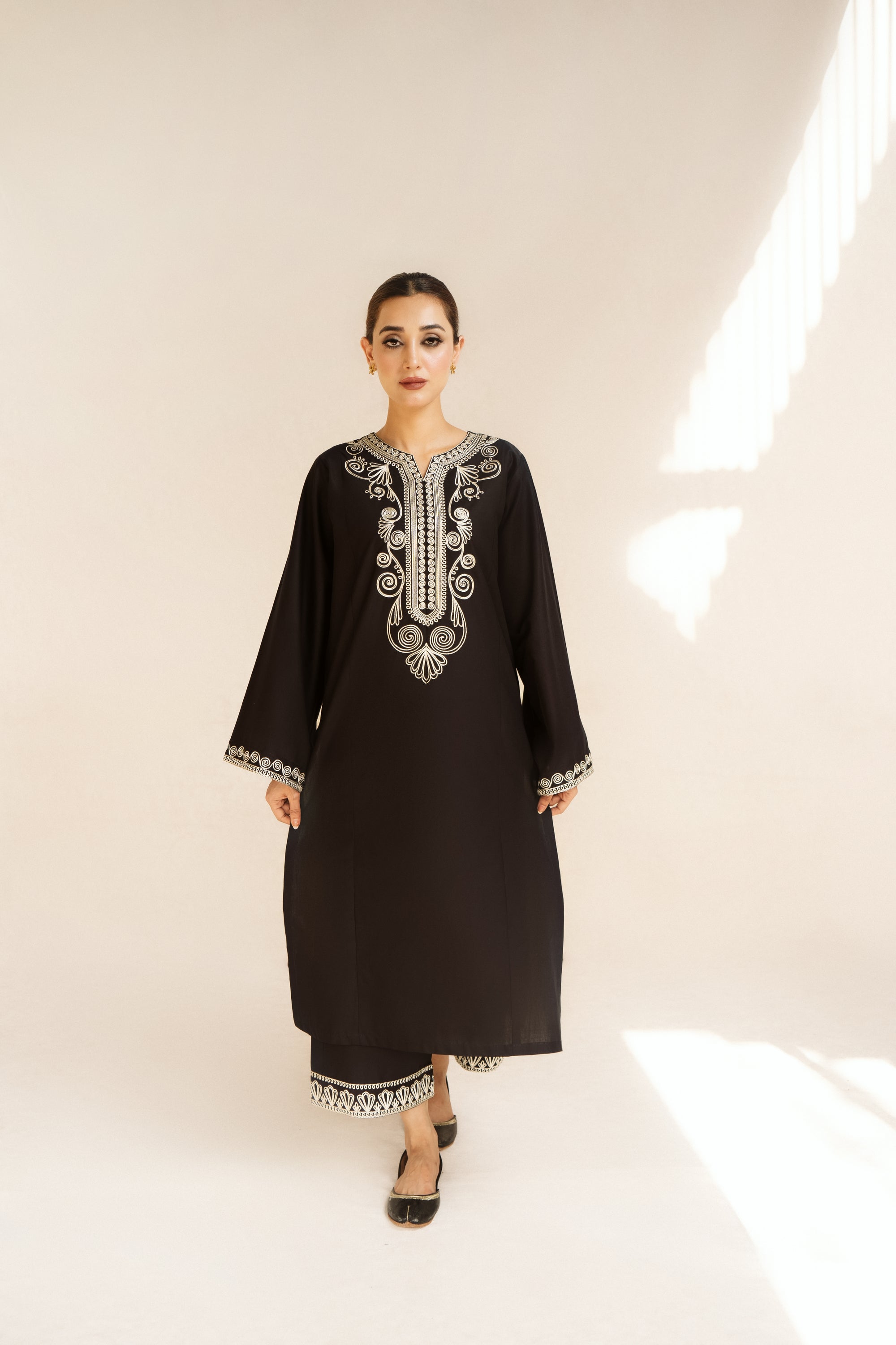 Discover elegance in our DASTAAN 2pc embroidered lawn suit. Featuring a long shirt with intricate embroidery on the neckline and loose sleeves, paired with loose trousers also adorned with embroidery. Ready to wear for effortless style.