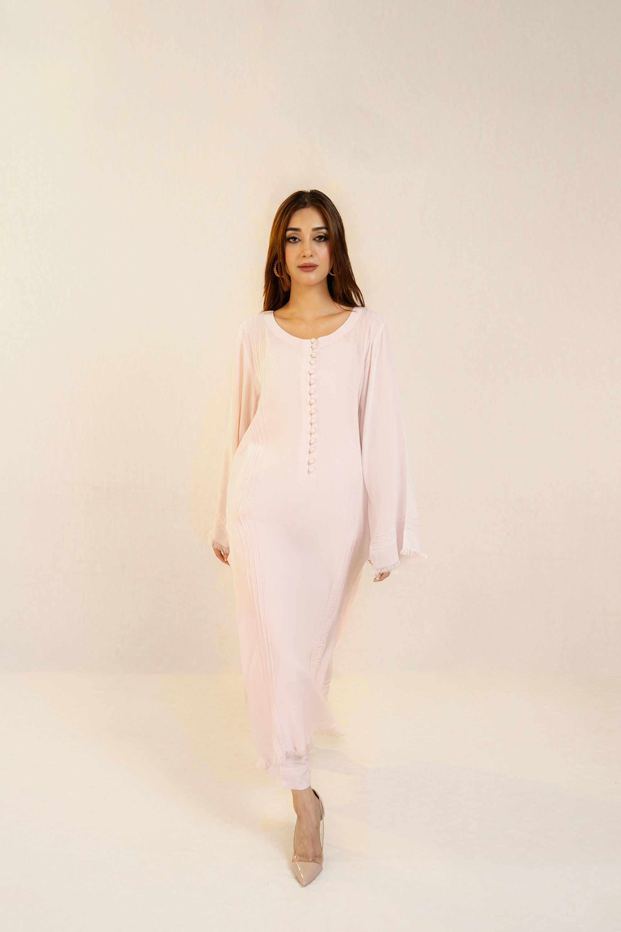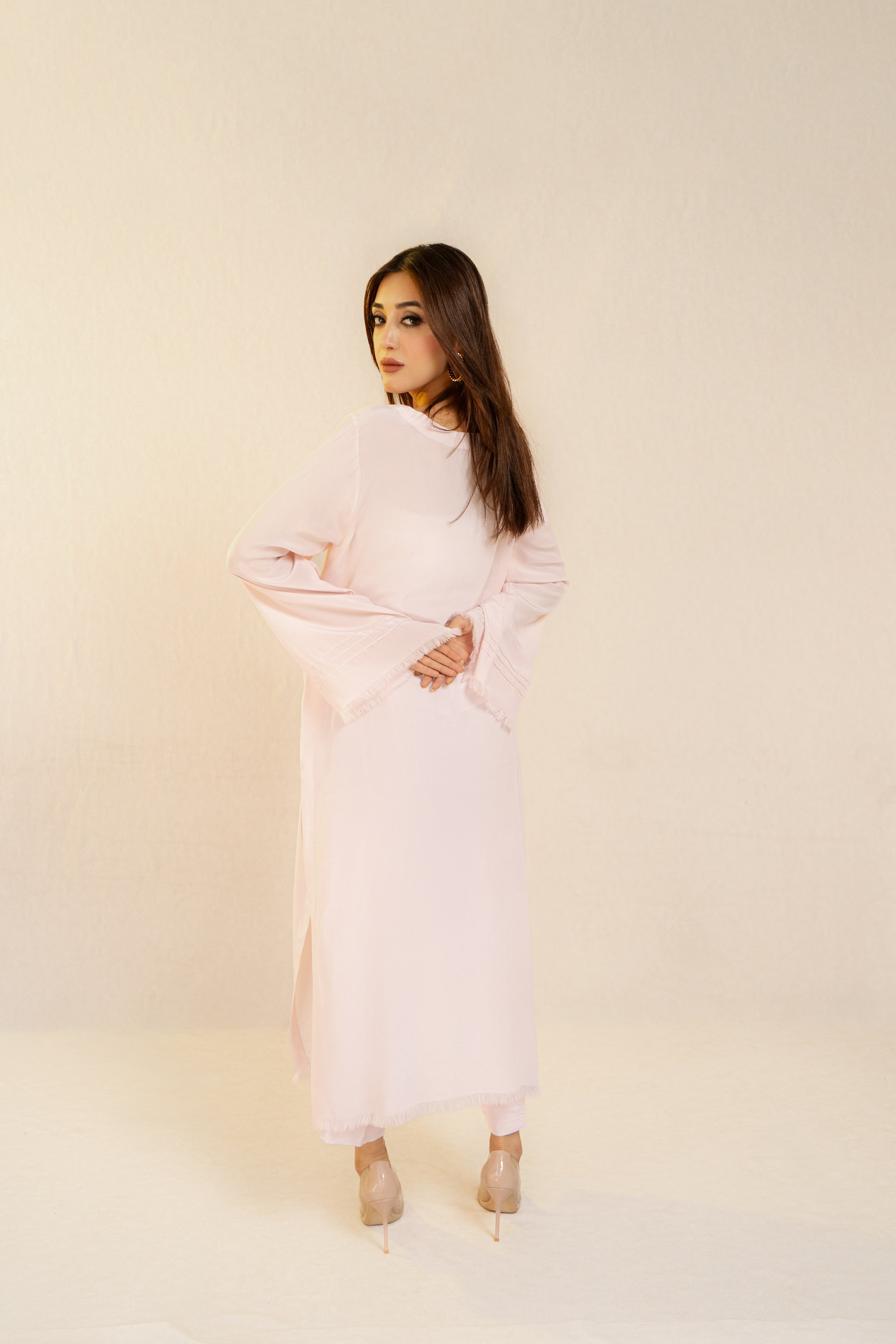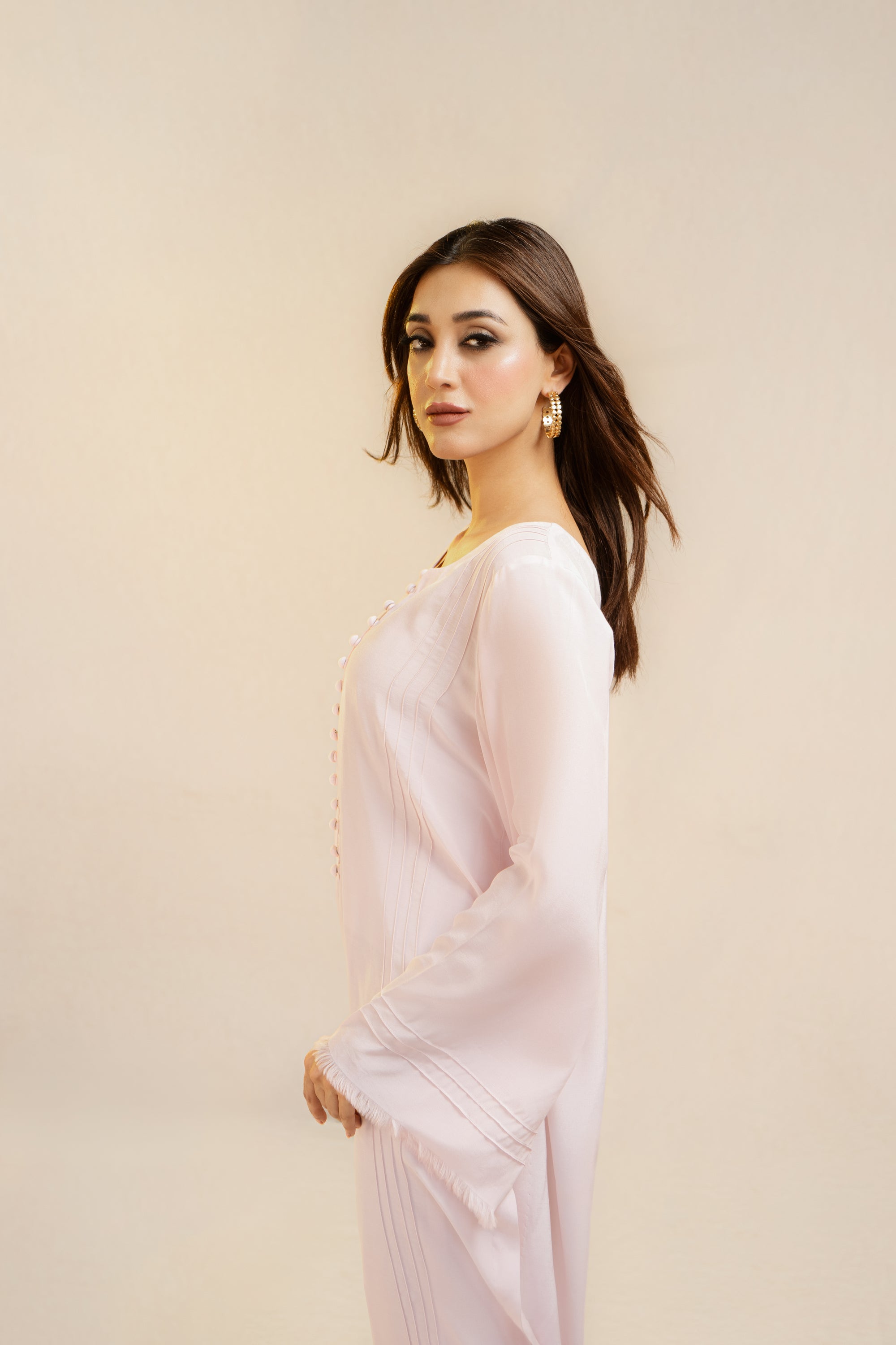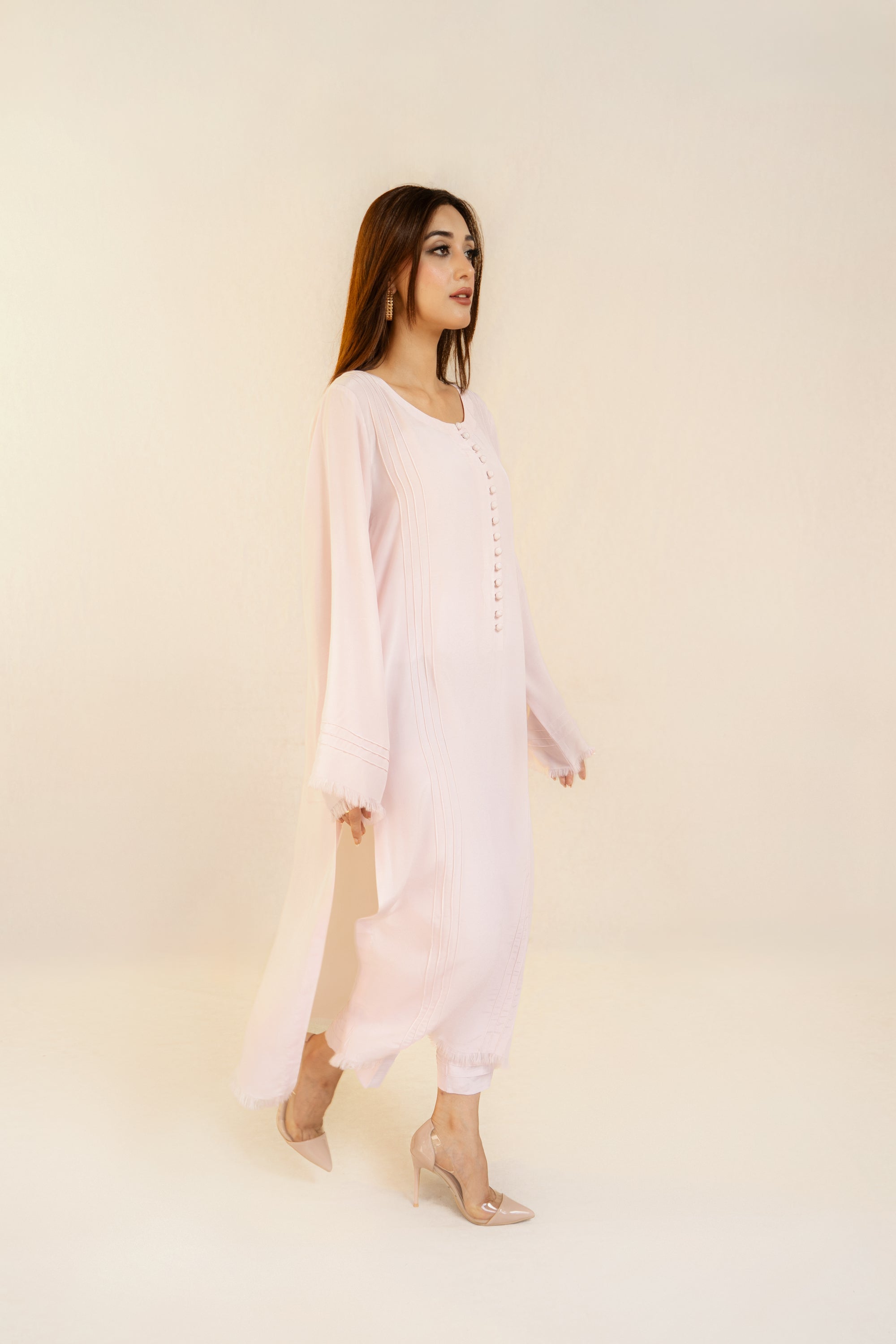Shirt viscose and linen blend, buttoned front detail with pintex. full sleeves with frayed edges.