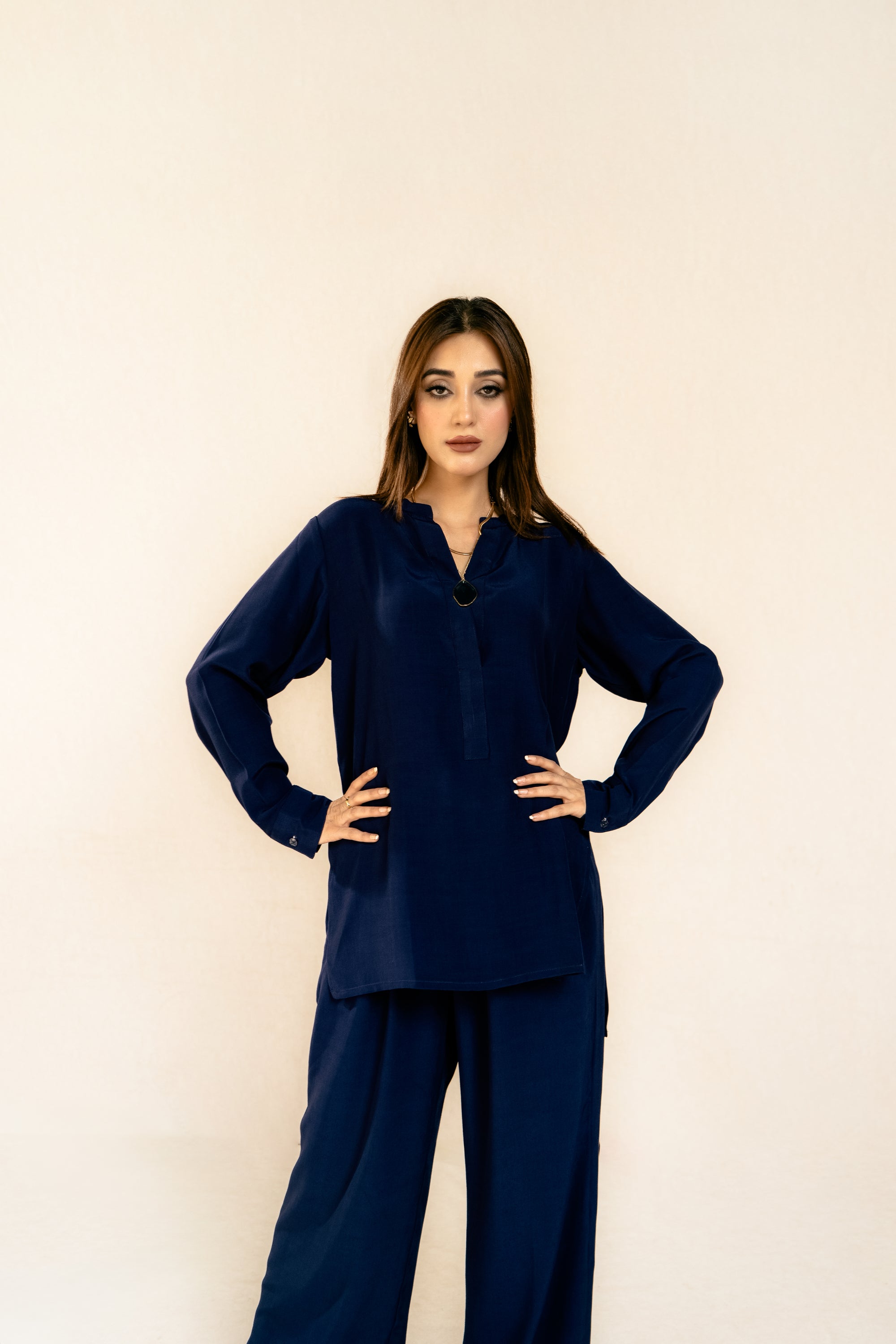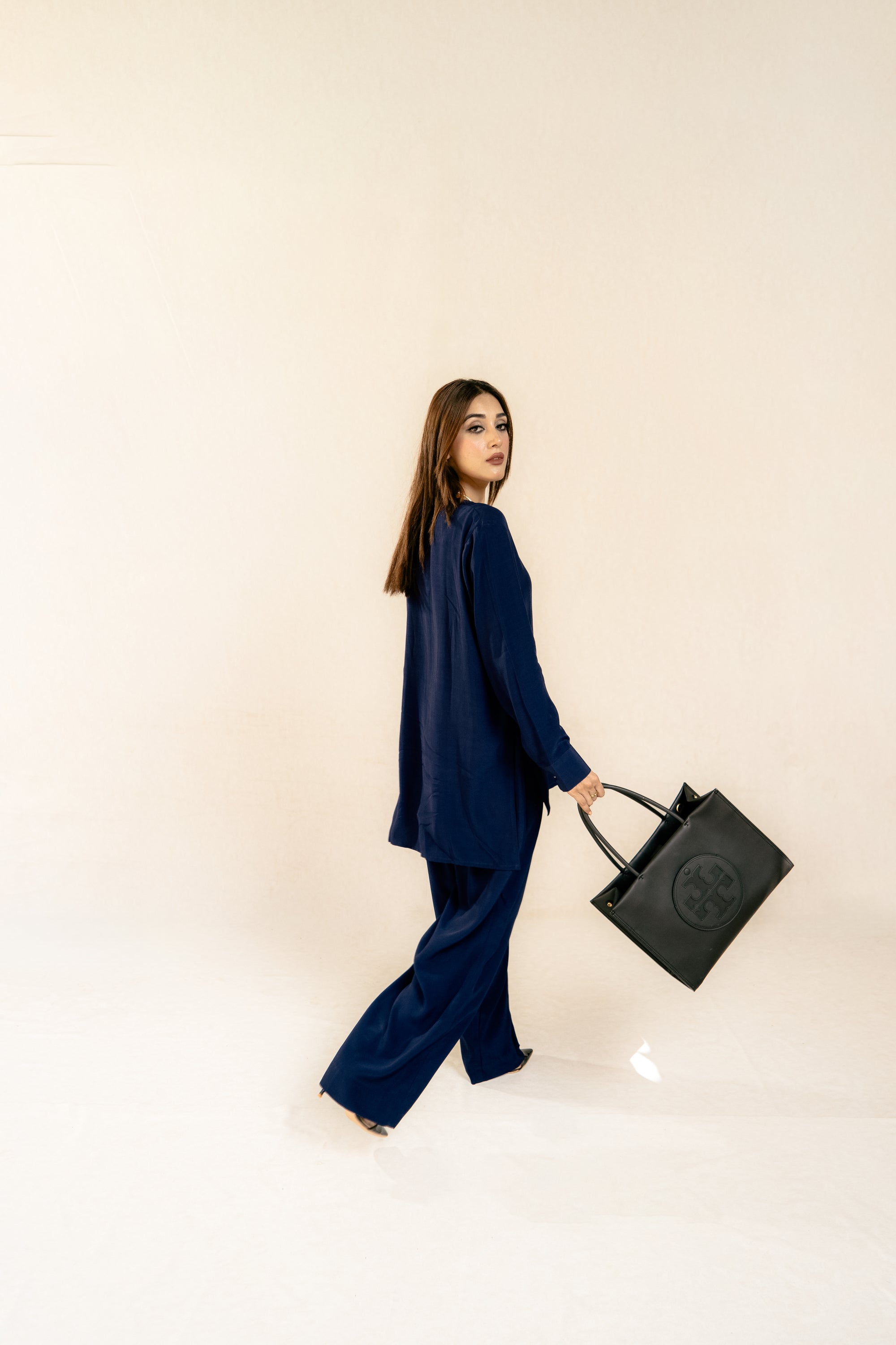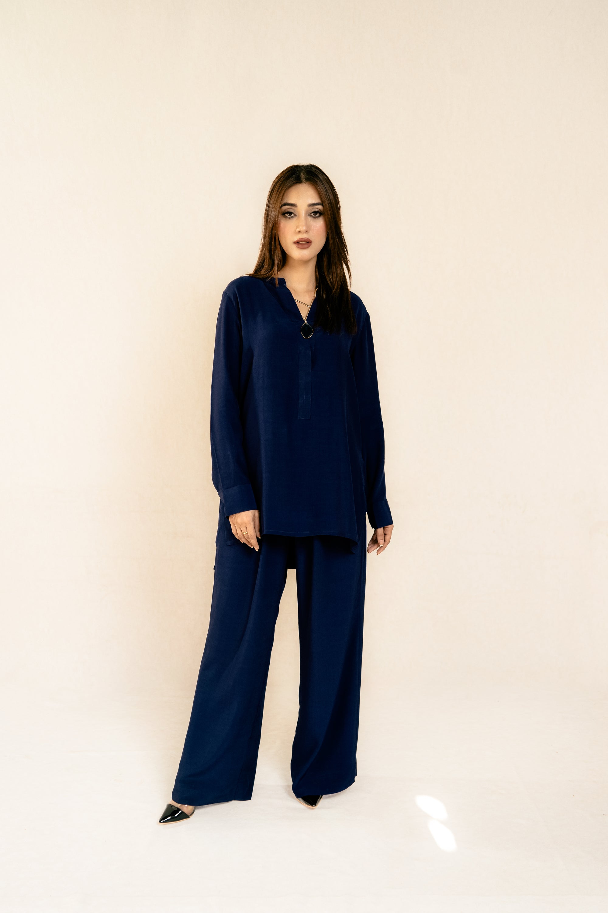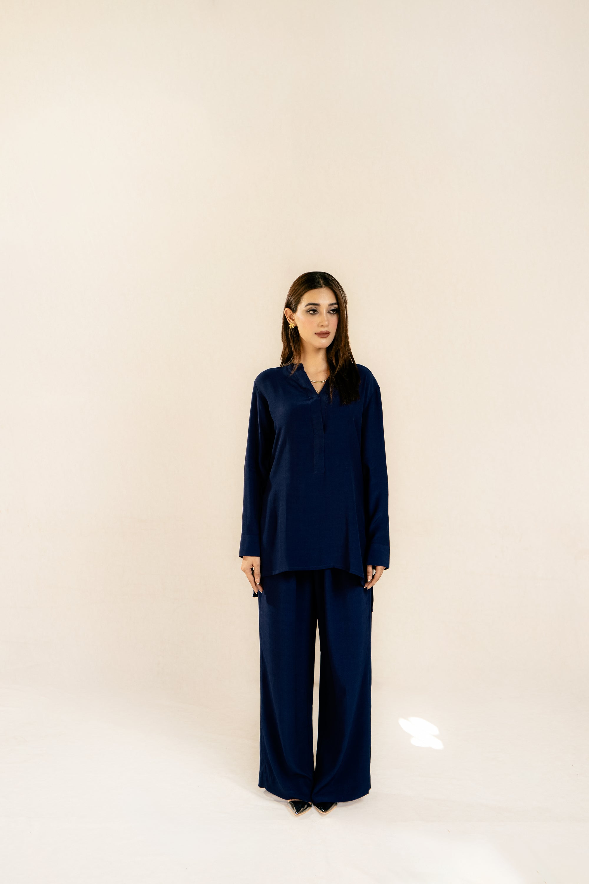 waistband with elastic band. Wide legs with pintex detail on hem.