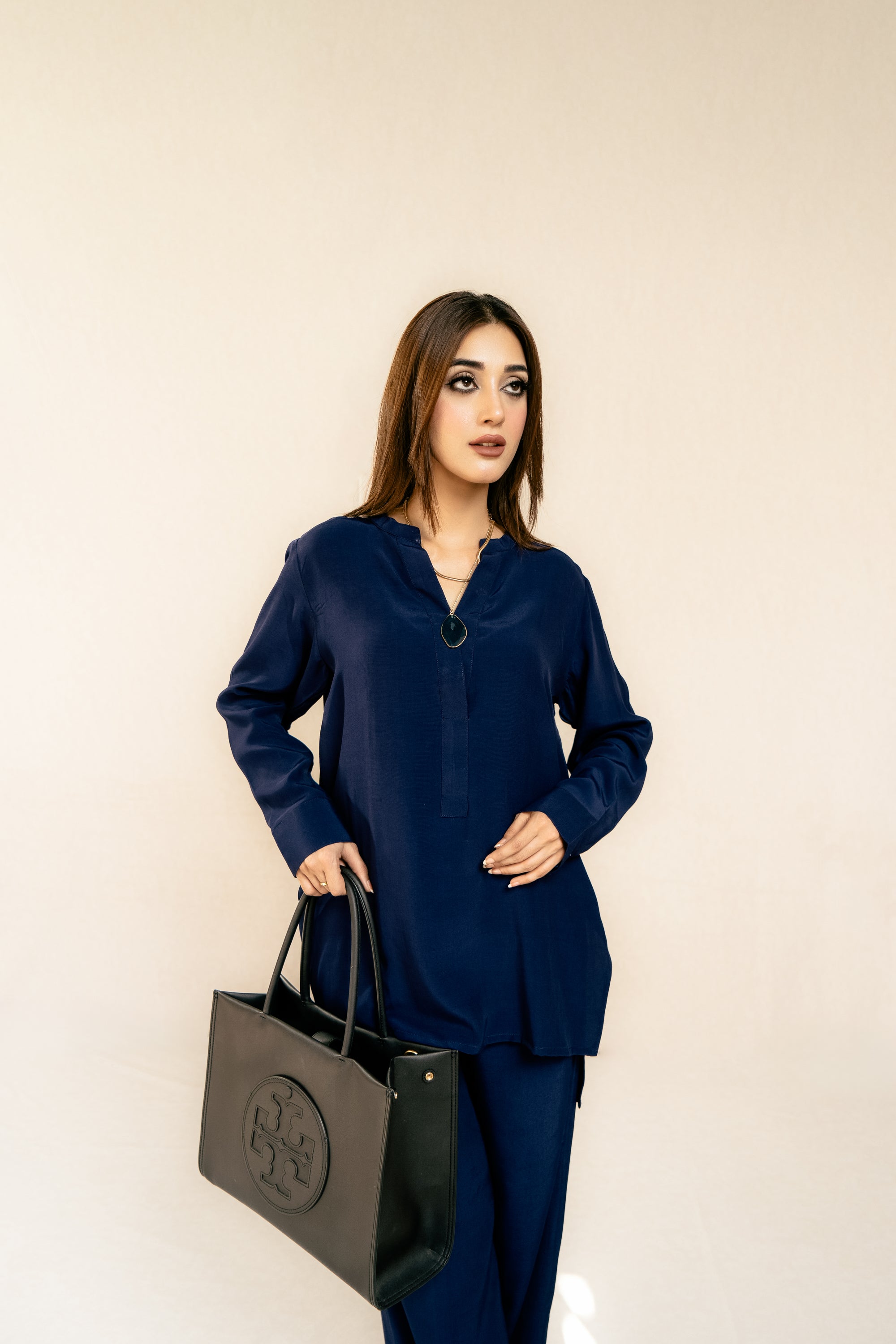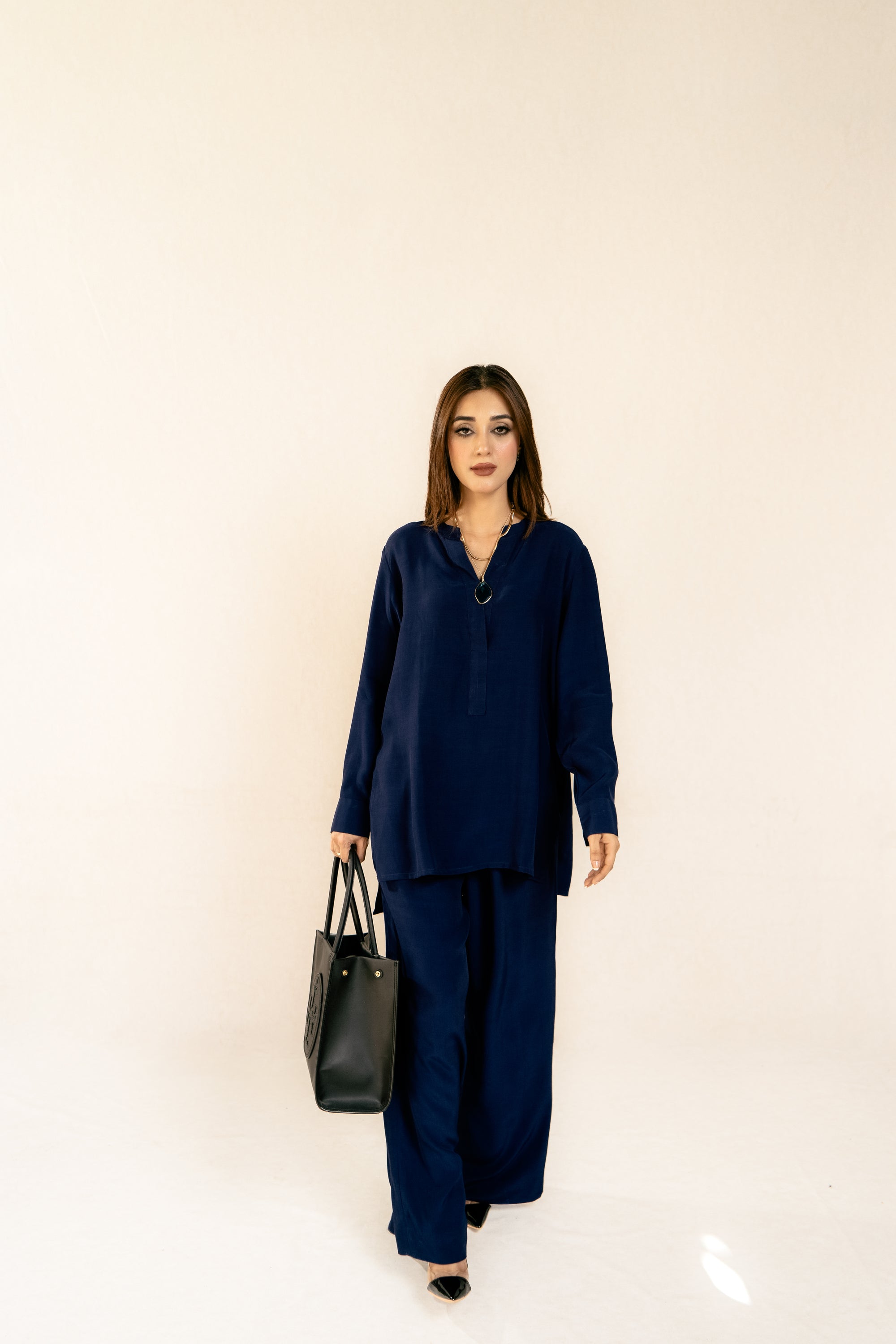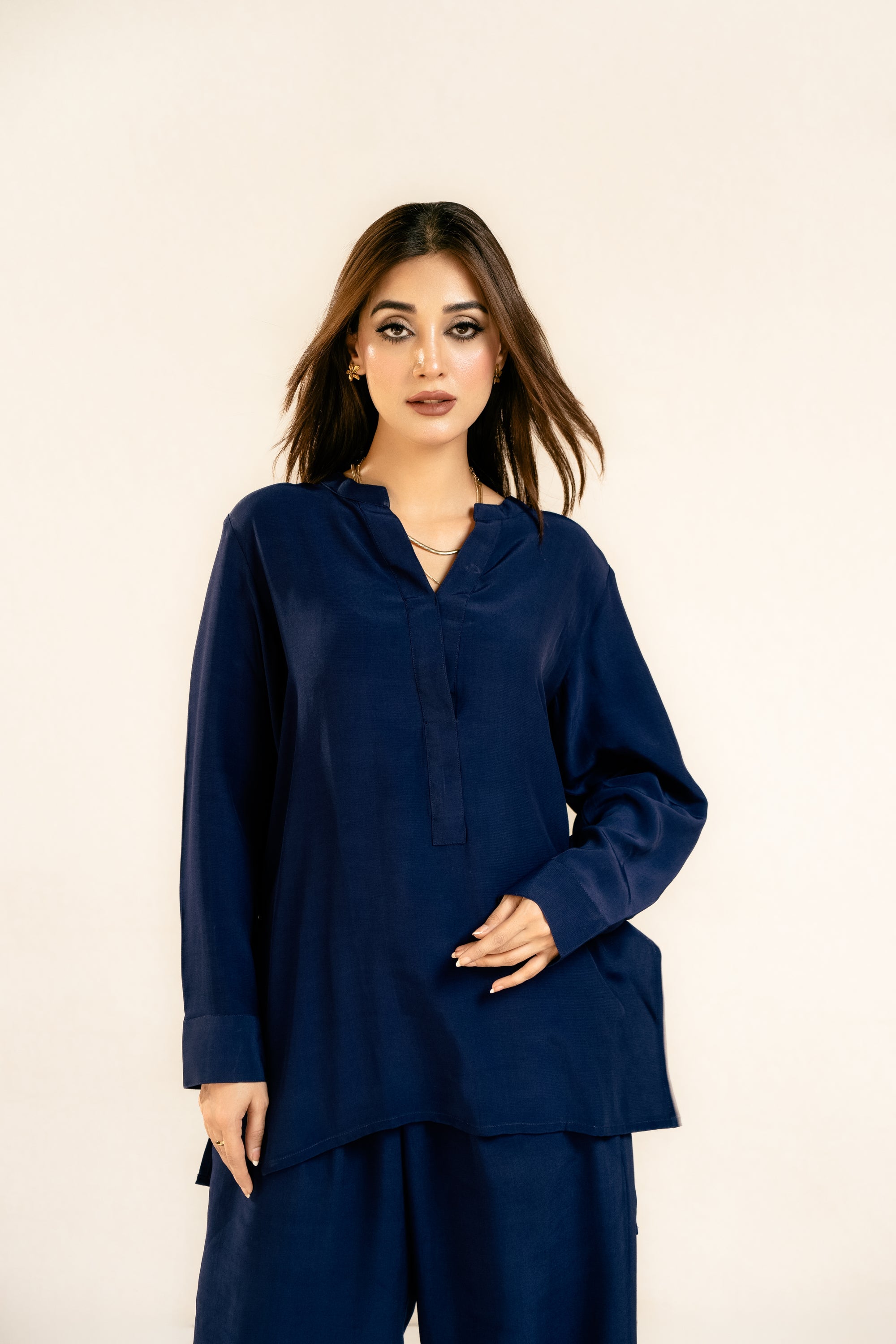 waistband with elastic band. Wide legs with pintex detail on hem.