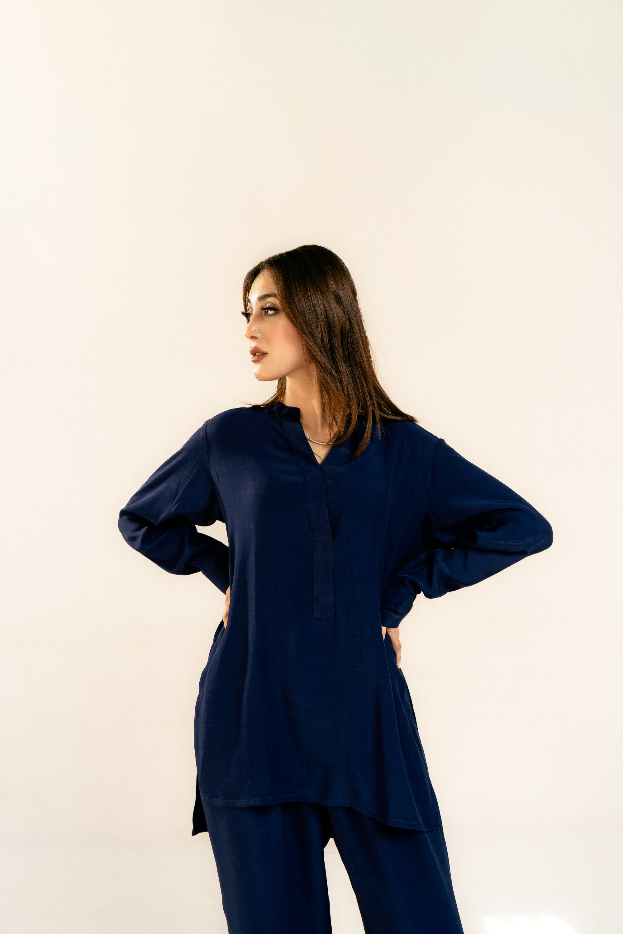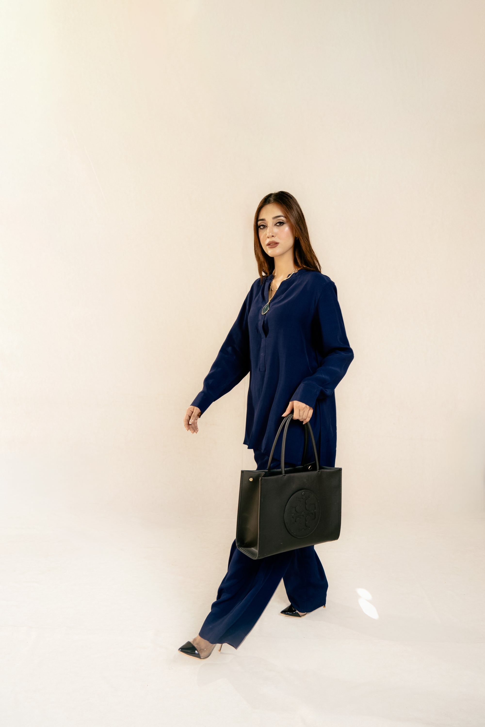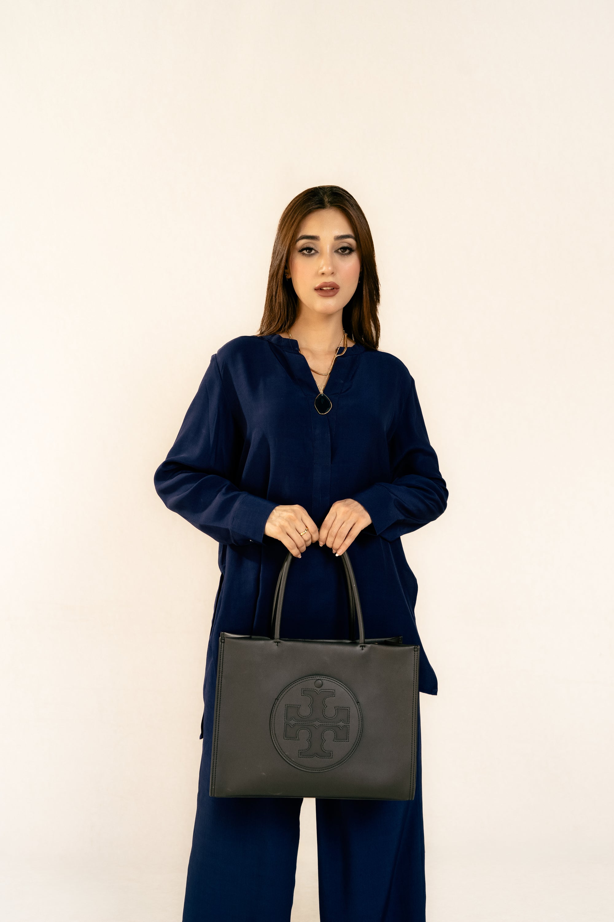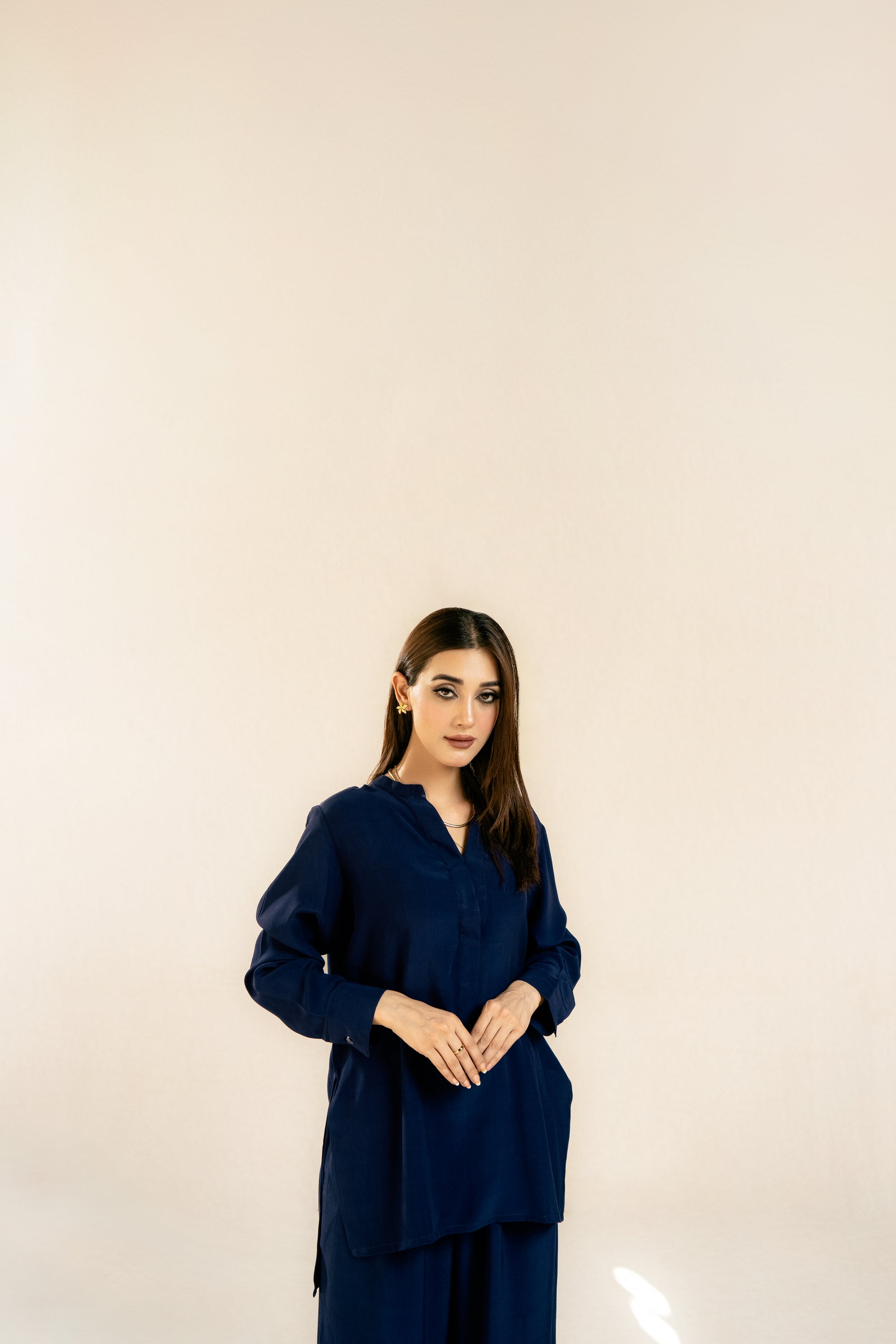 waistband with elastic band. Wide legs with pintex detail on hem.