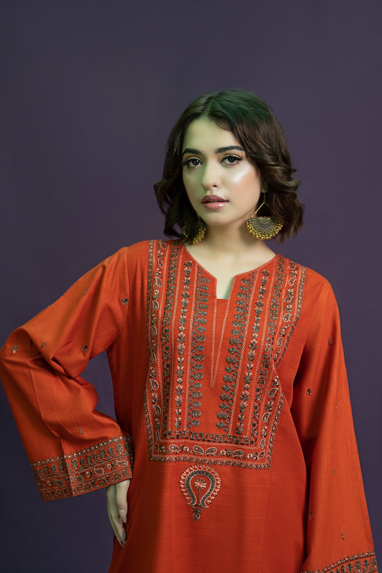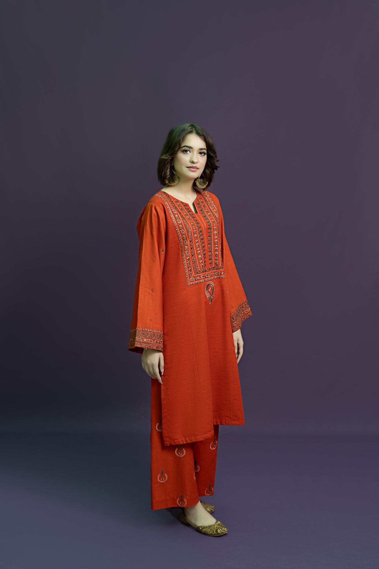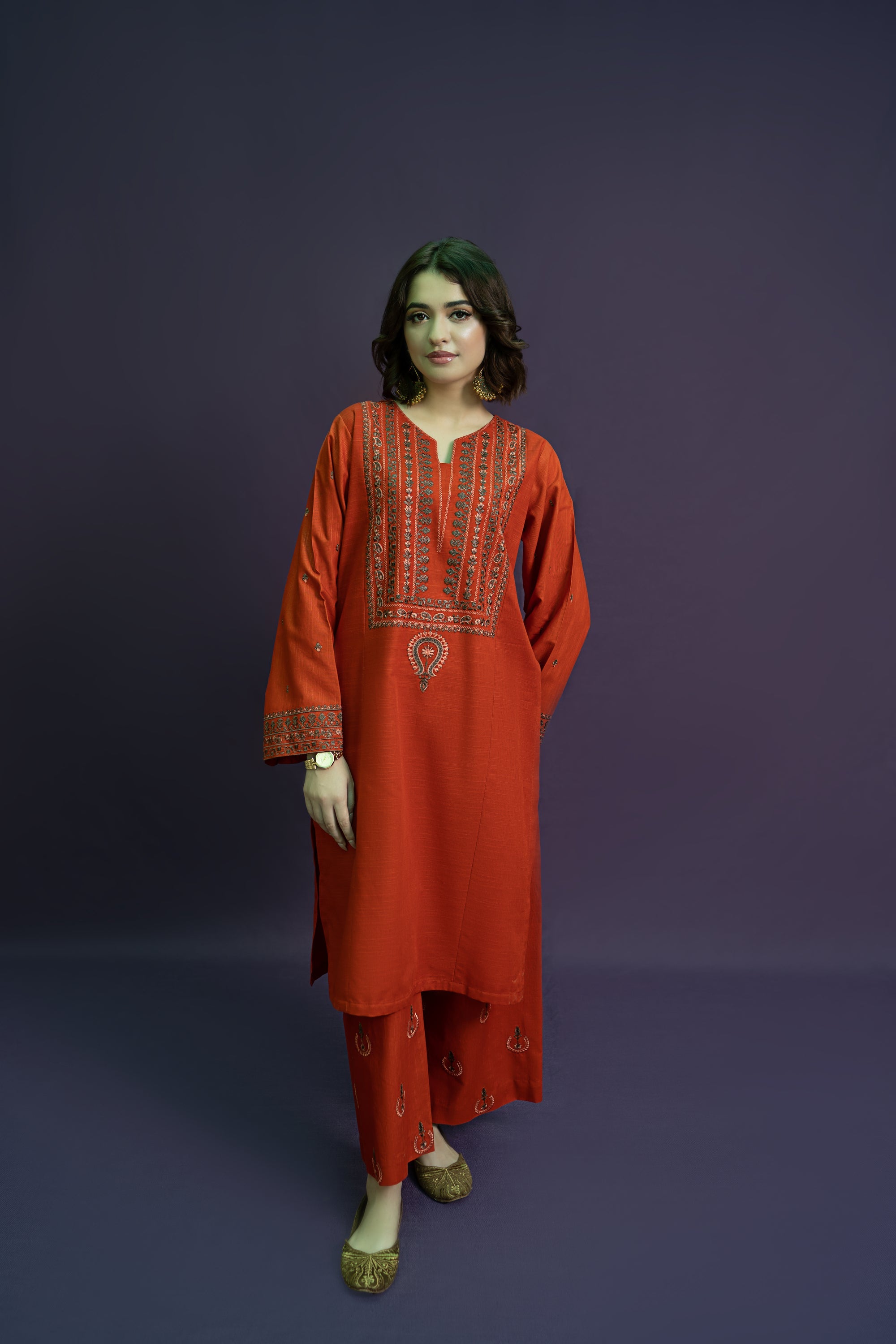 Expertly crafted and ready to wear, our NAQSH 2pc embroidered khaddar suit features intricate embroidery on the neckline and sleeves, adding an elegant touch to your wardrobe. The trousers are also beautifully embroidered, making this a stylish and versatile option for any occasion.
