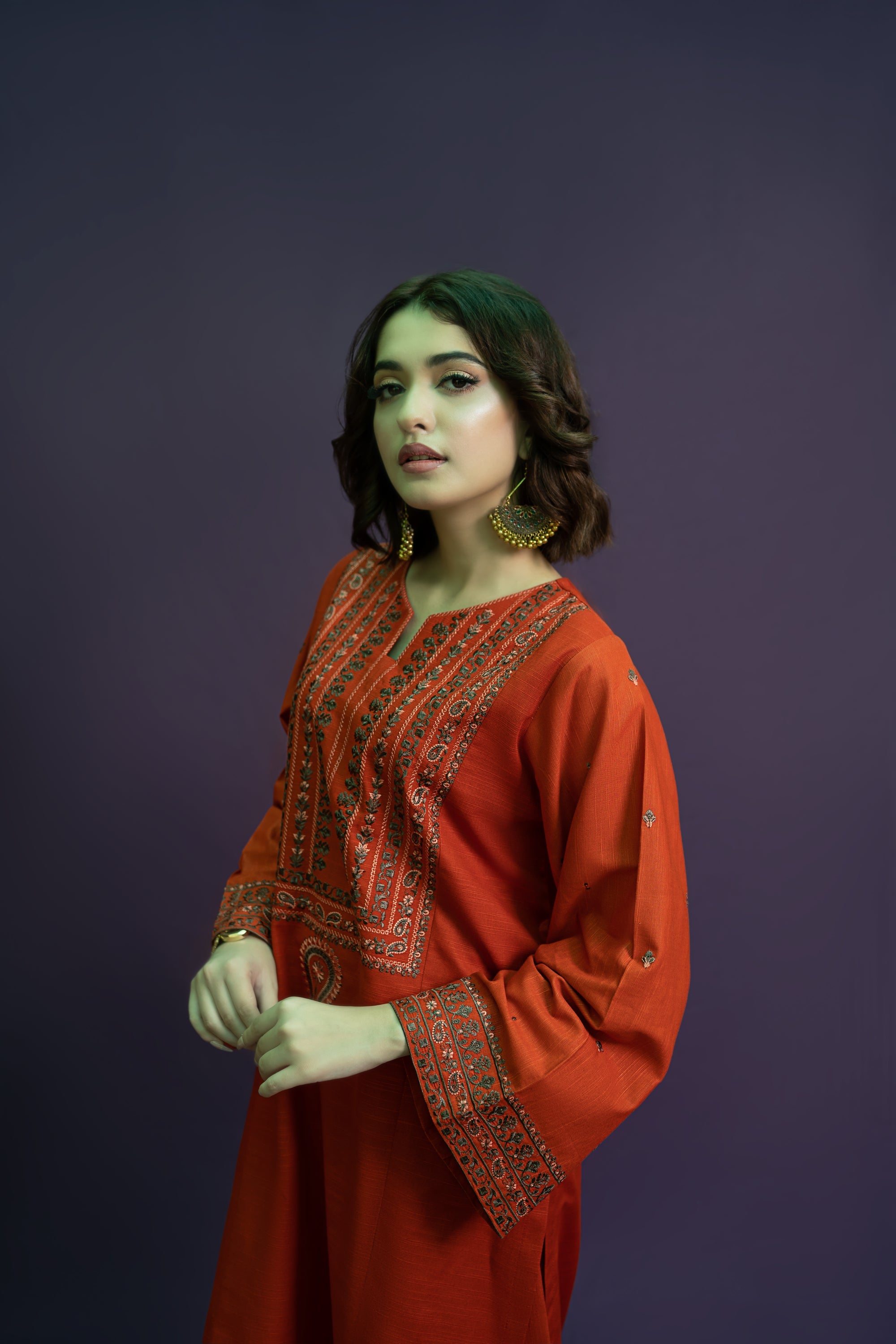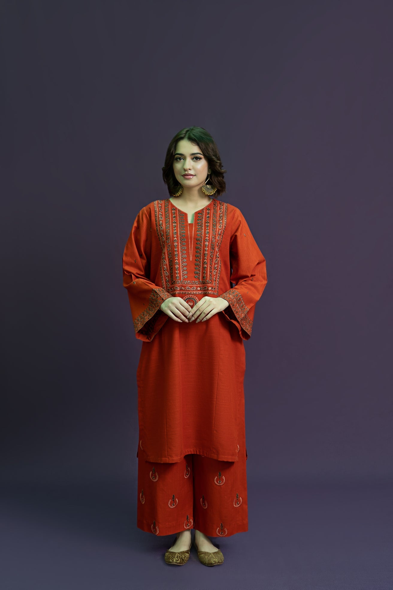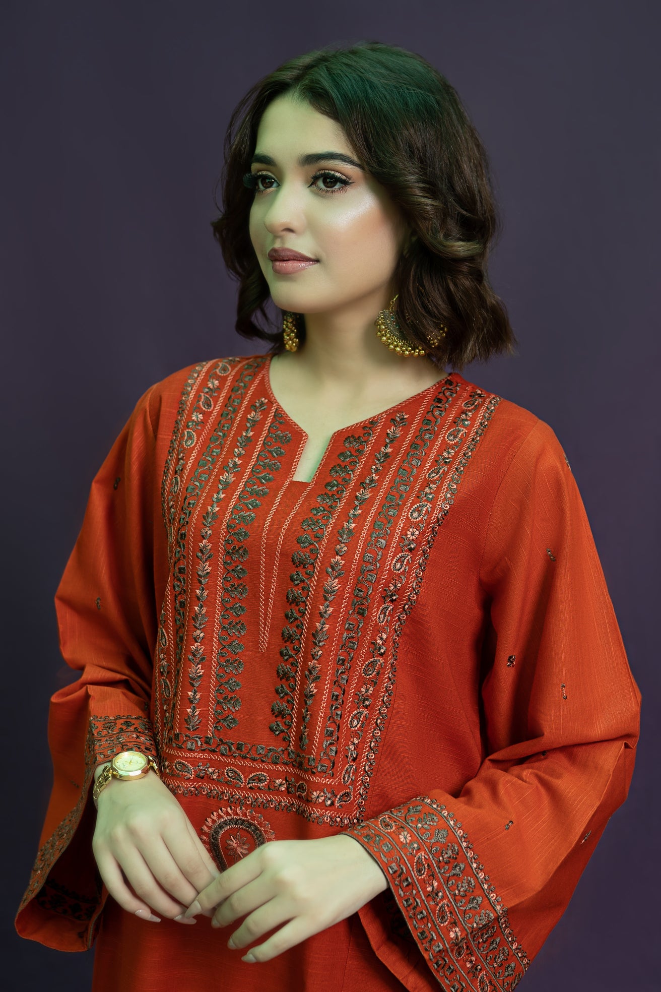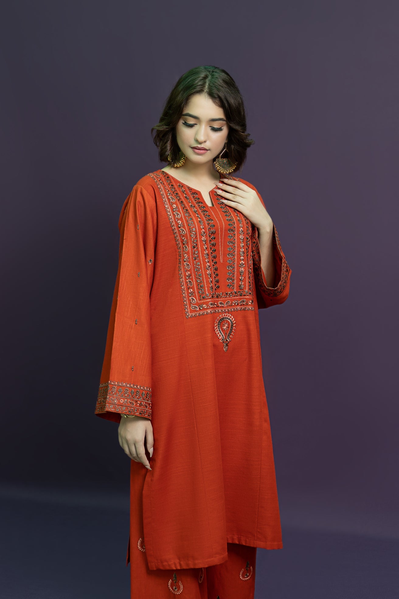 Expertly crafted and ready to wear, our NAQSH 2pc embroidered khaddar suit features intricate embroidery on the neckline and sleeves, adding an elegant touch to your wardrobe. The trousers are also beautifully embroidered, making this a stylish and versatile option for any occasion.