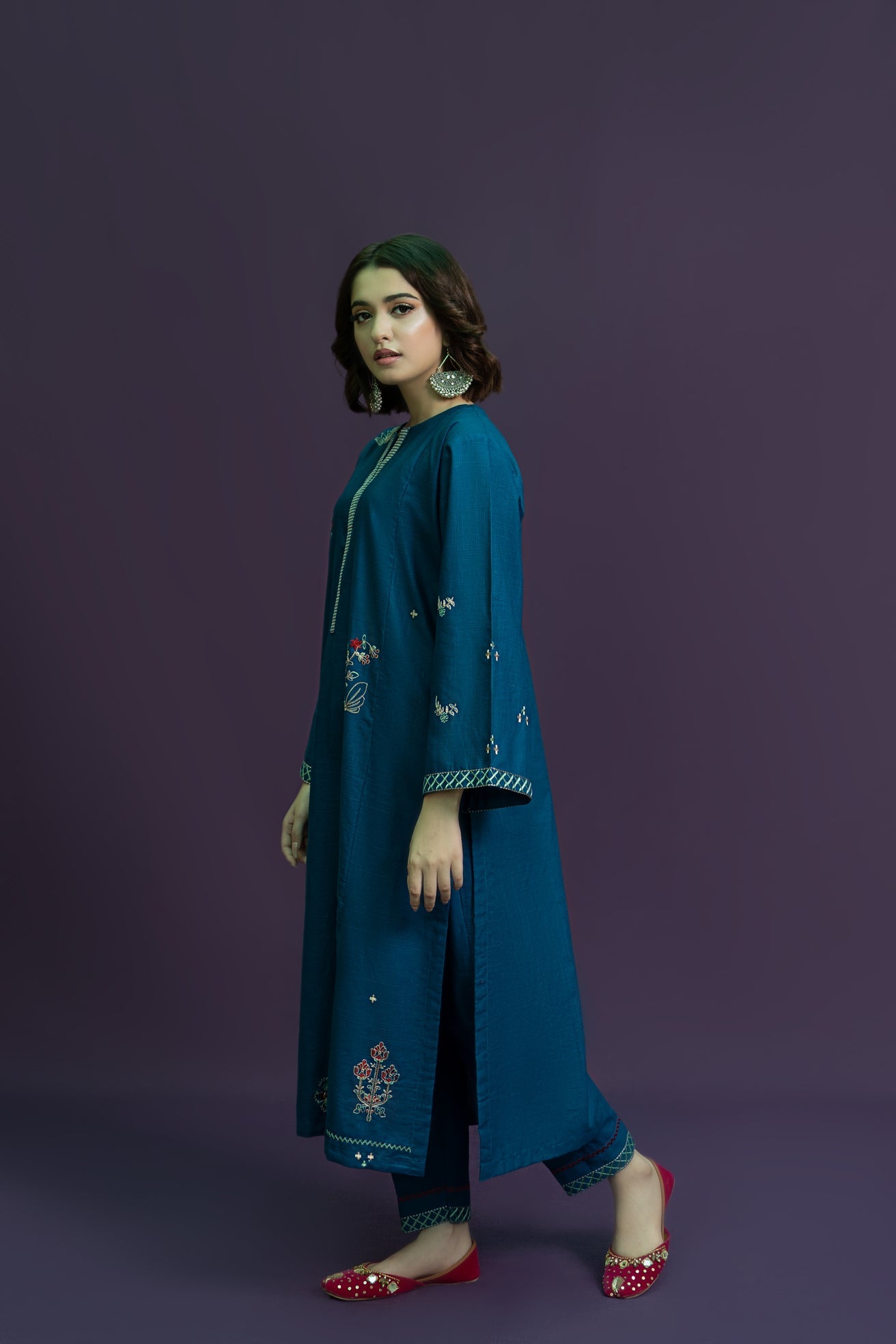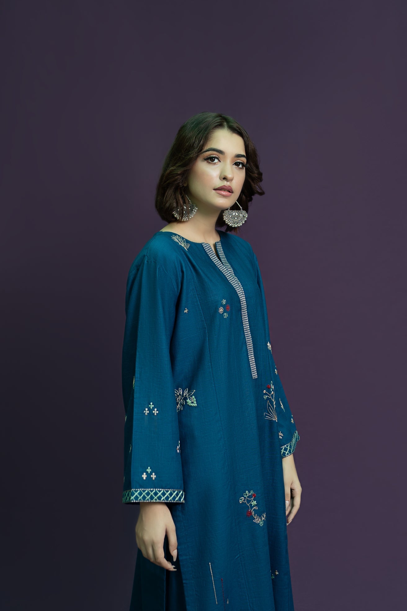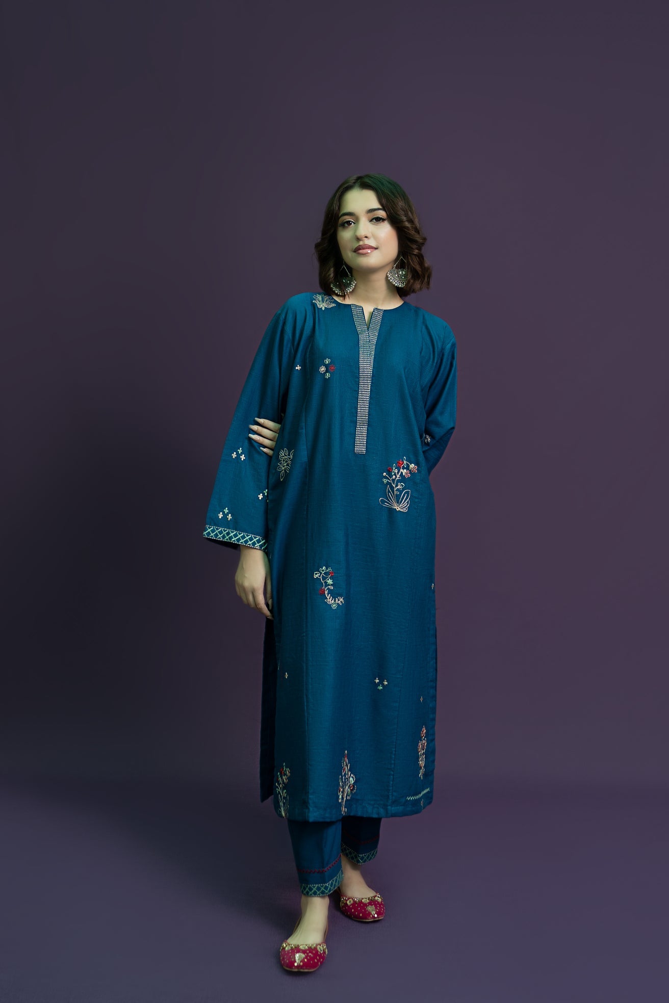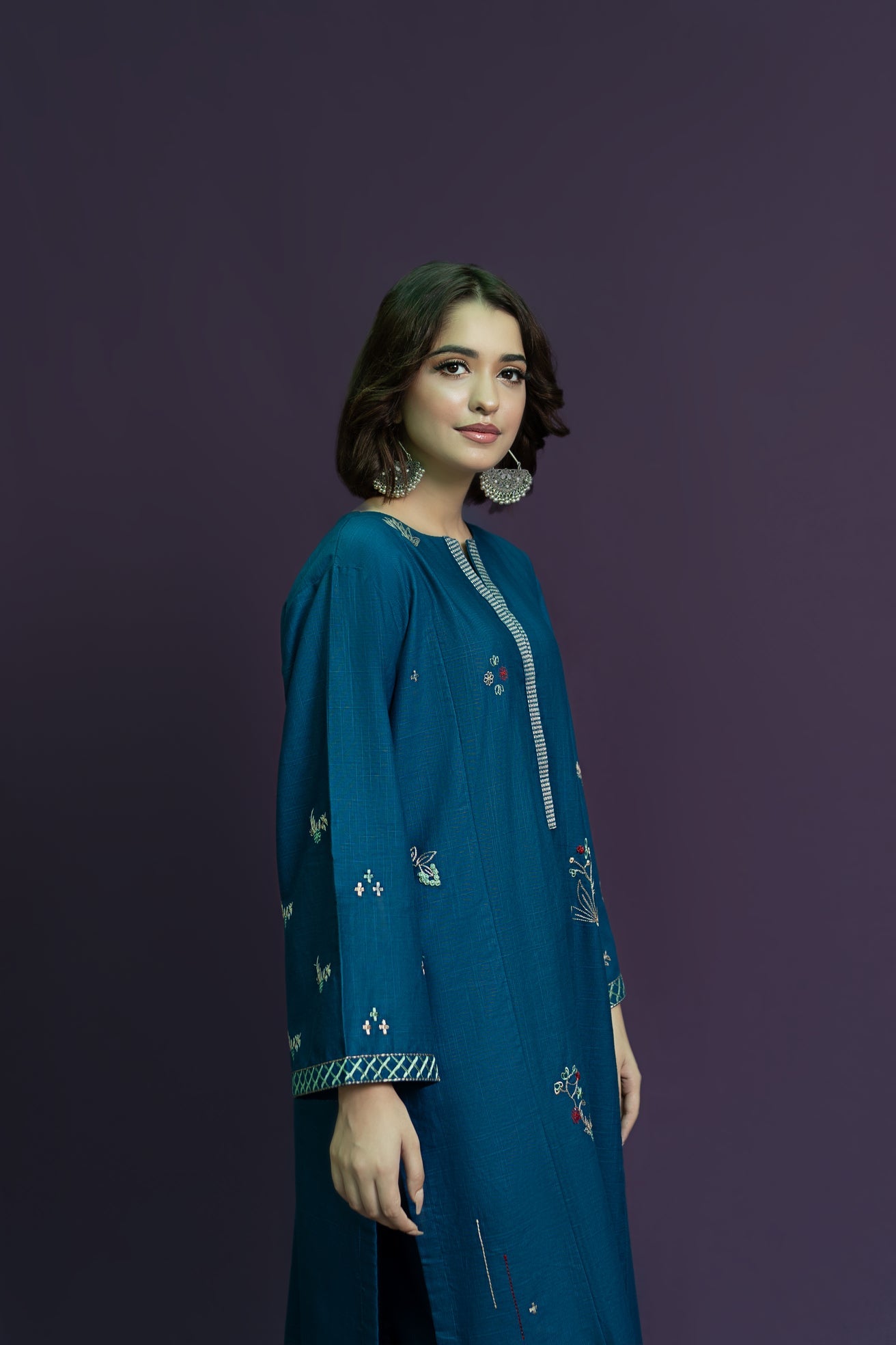 Introducing TARA, the perfect ready-to-wear 2pc embroidered khaddar suit. Featuring unique embroidery motifs on the shirt front and sleeves, paired with embroidered straight trousers. Elevate your style with this one-of-a-kind ensemble.